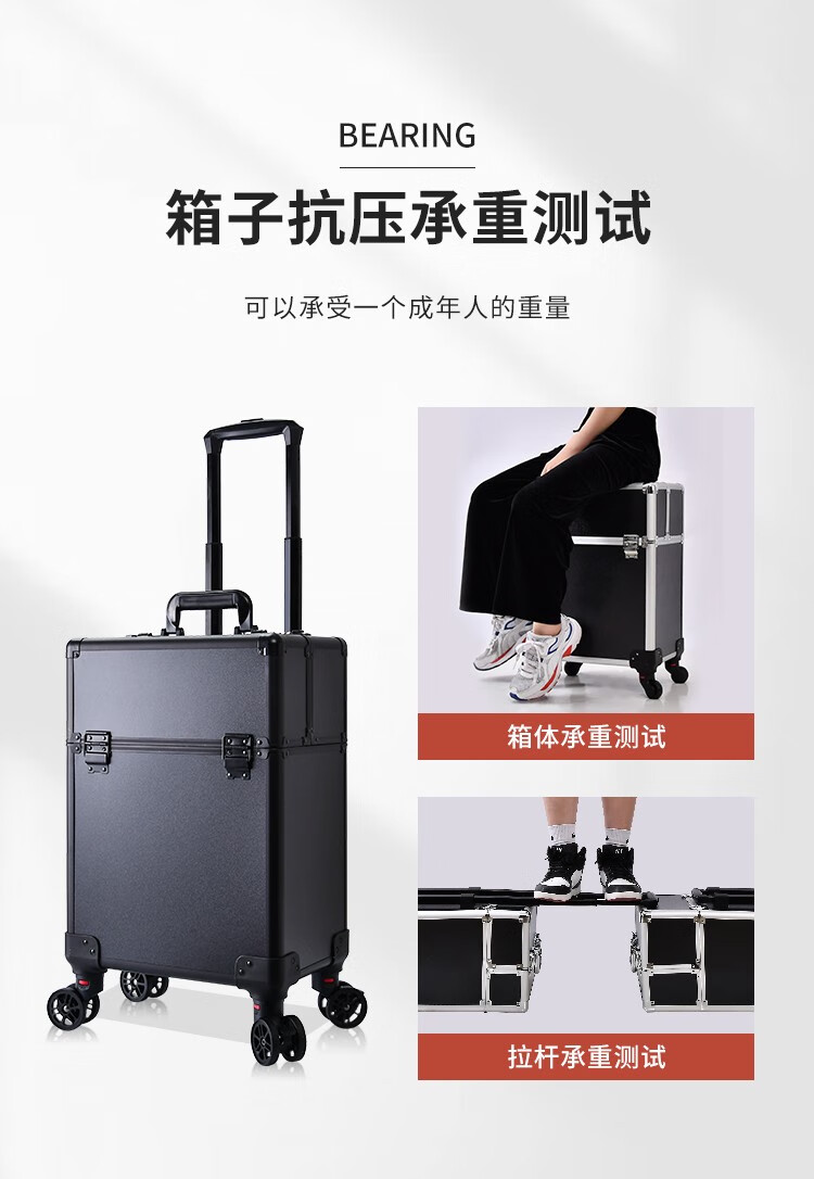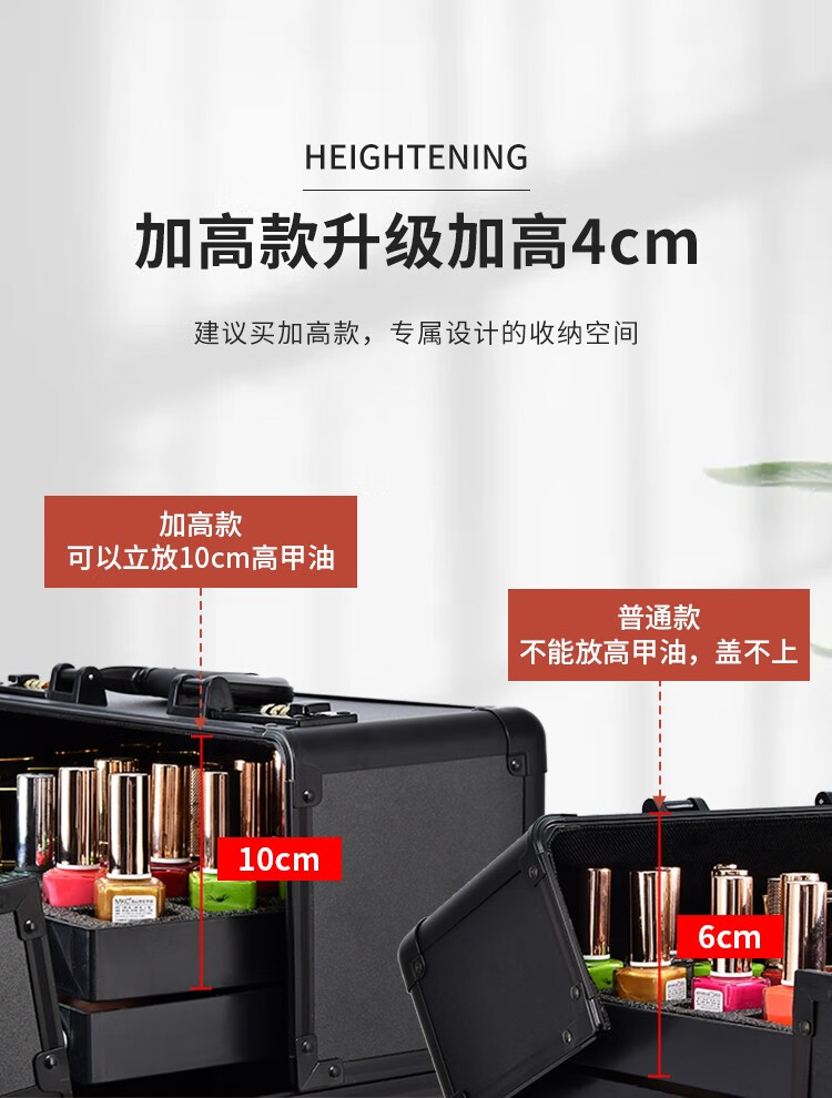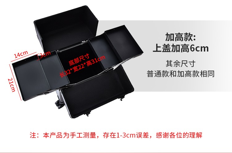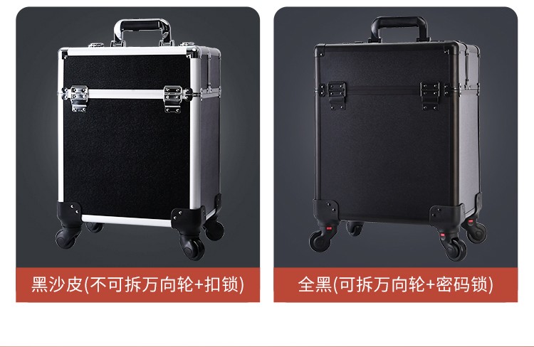 Qilong makeup box, large capacity trolley box for professional makeup artists, password-protected storage tool box for nail art and embroidery artists, all-black password lock, extra height model, detachable wheels