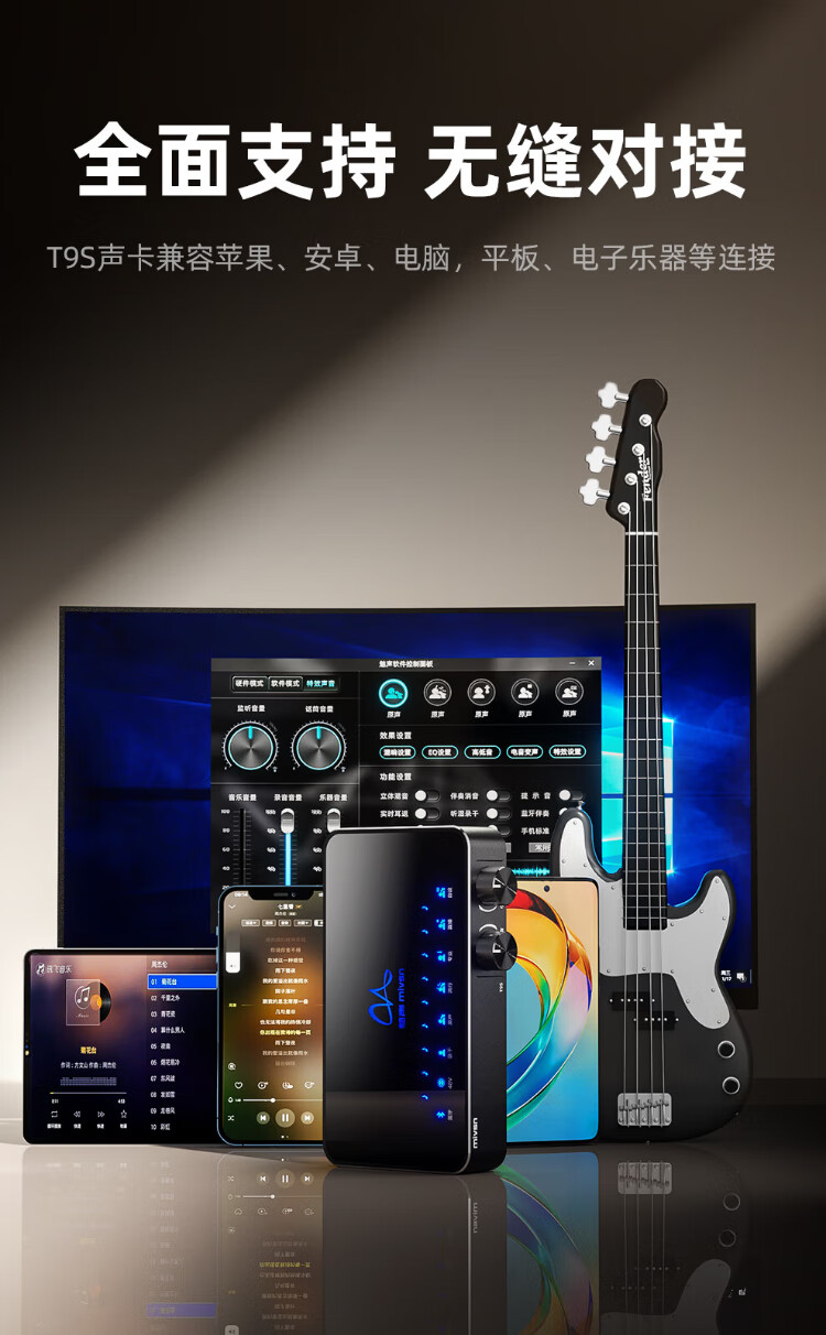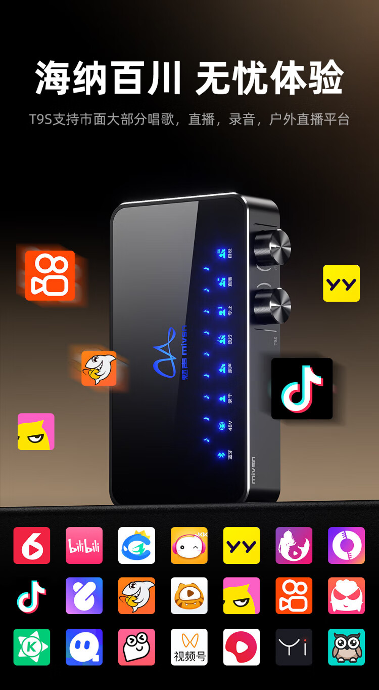 Meisheng T9S sound card live broadcast equipment full set of singing recording dubbing advanced professional set computer mobile phone karaoke microphone shouting wheat Douyin Kuaishou anchor delivery T9S (P2-standard configuration-ordinary condenser microphone)