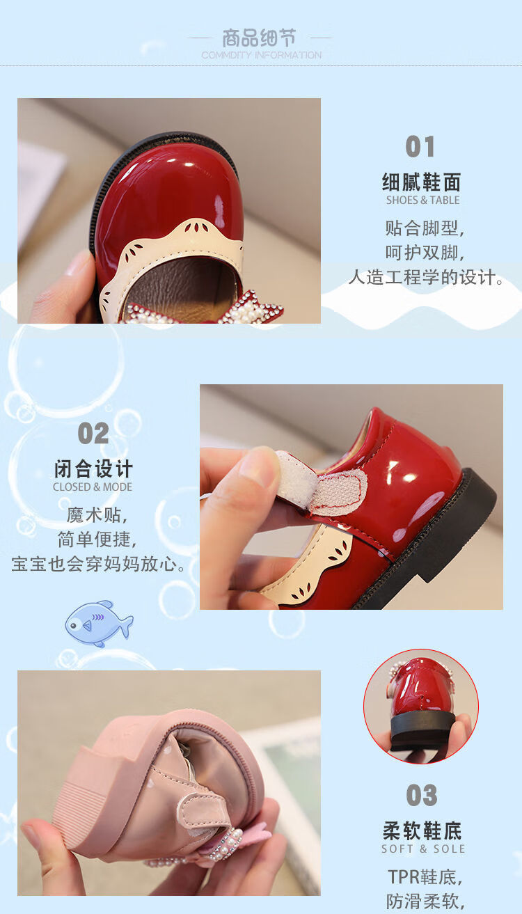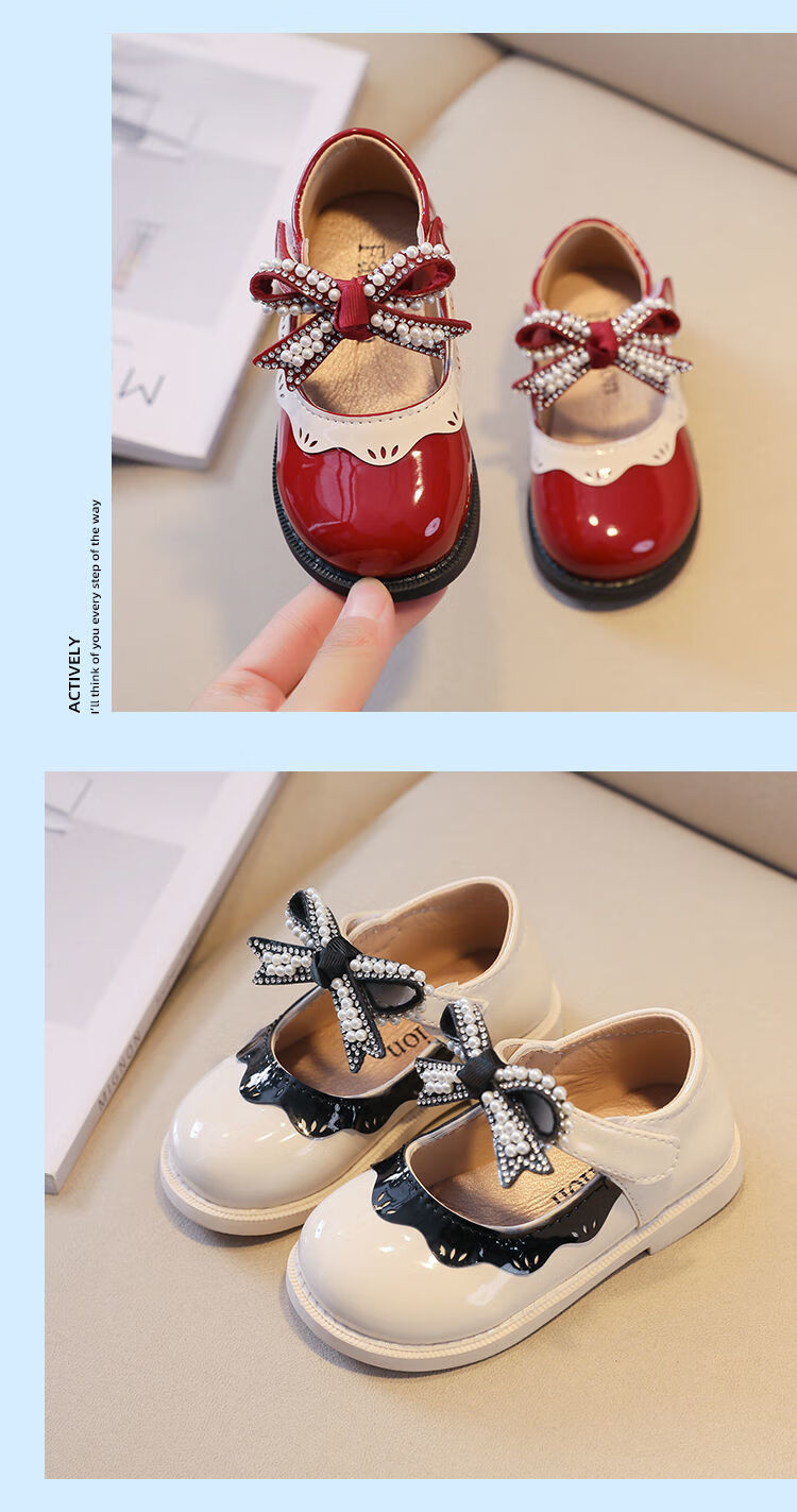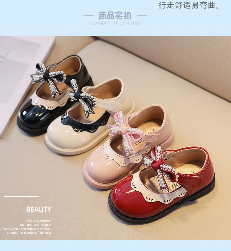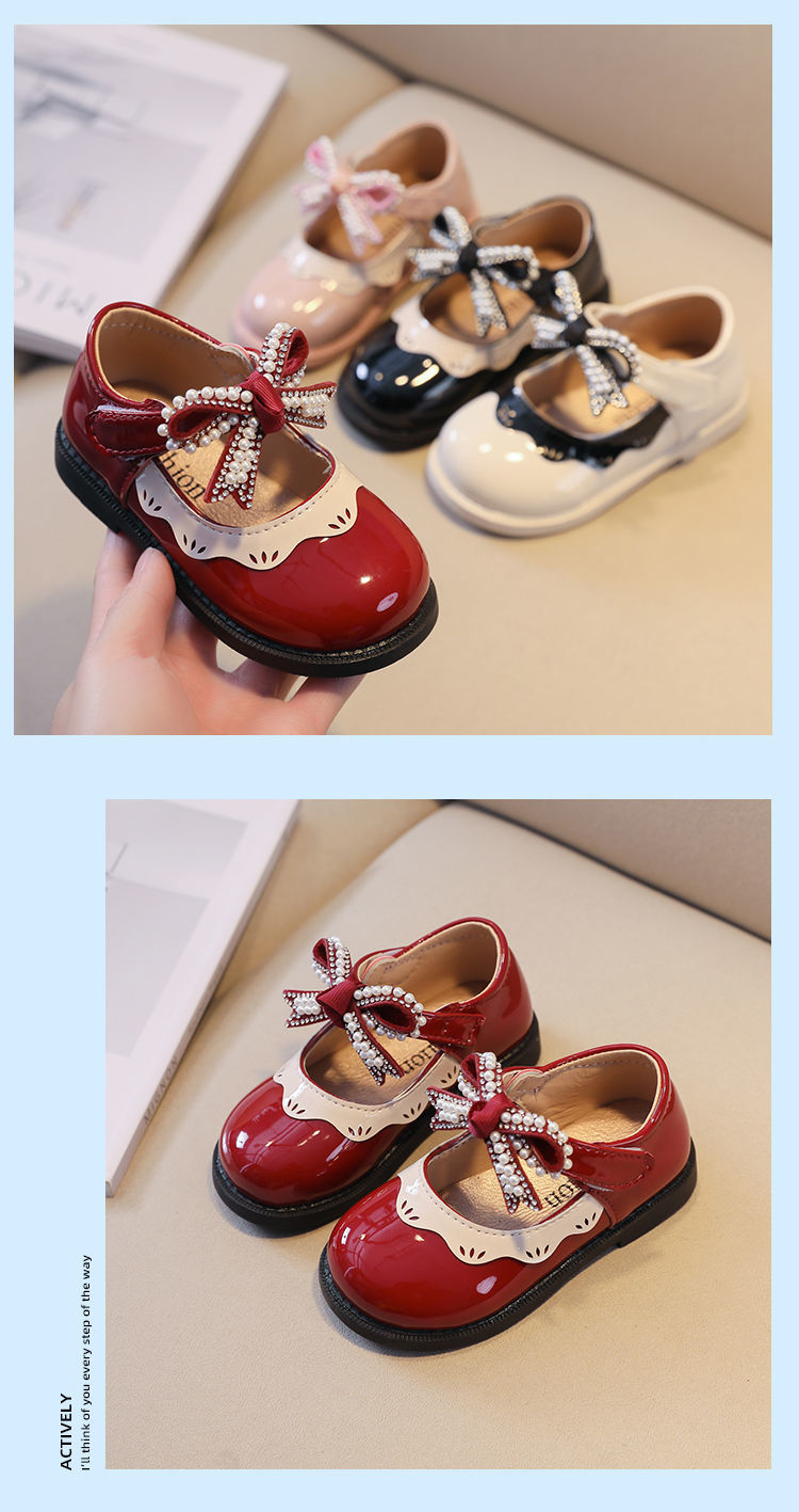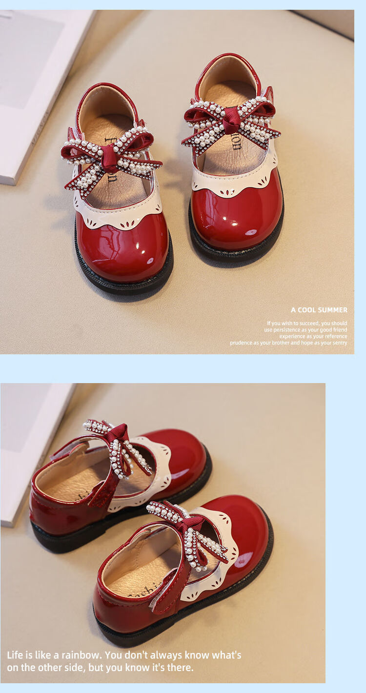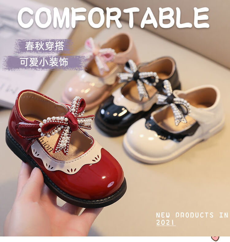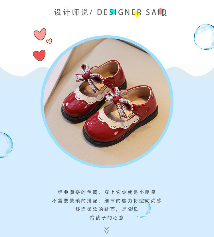 G.duck Little Yellow Duck Girls Leather Shoes 2026 New Spring and Autumn Soft Sole Baby Princess Shoes Children's Shoes Non-Slip Girls Single Burgundy H615 21 / Inner Length 13.5cm