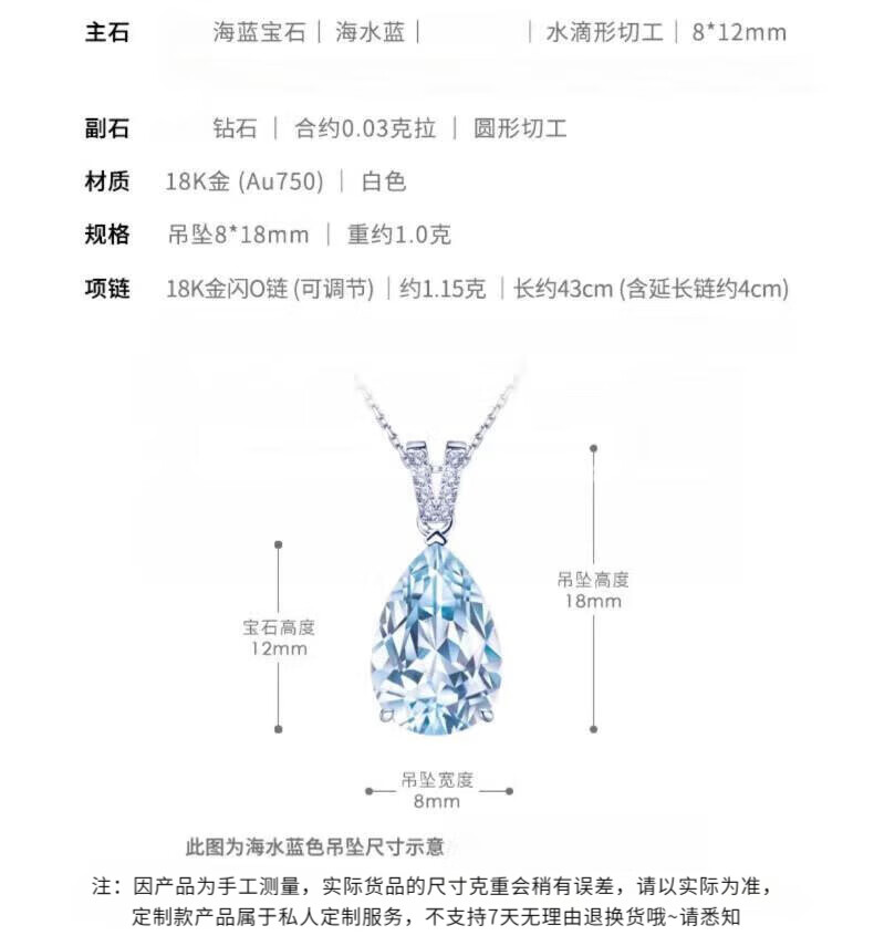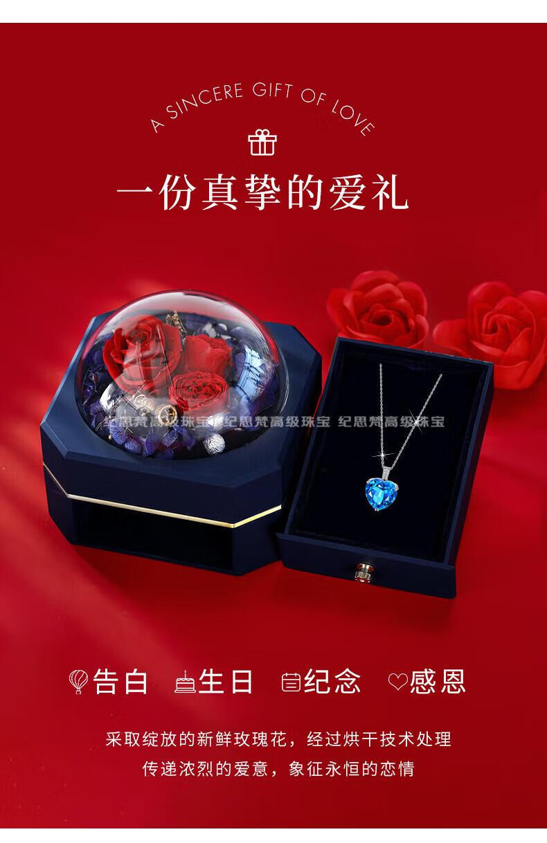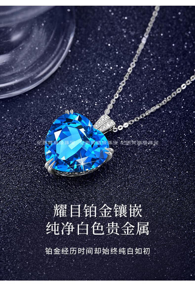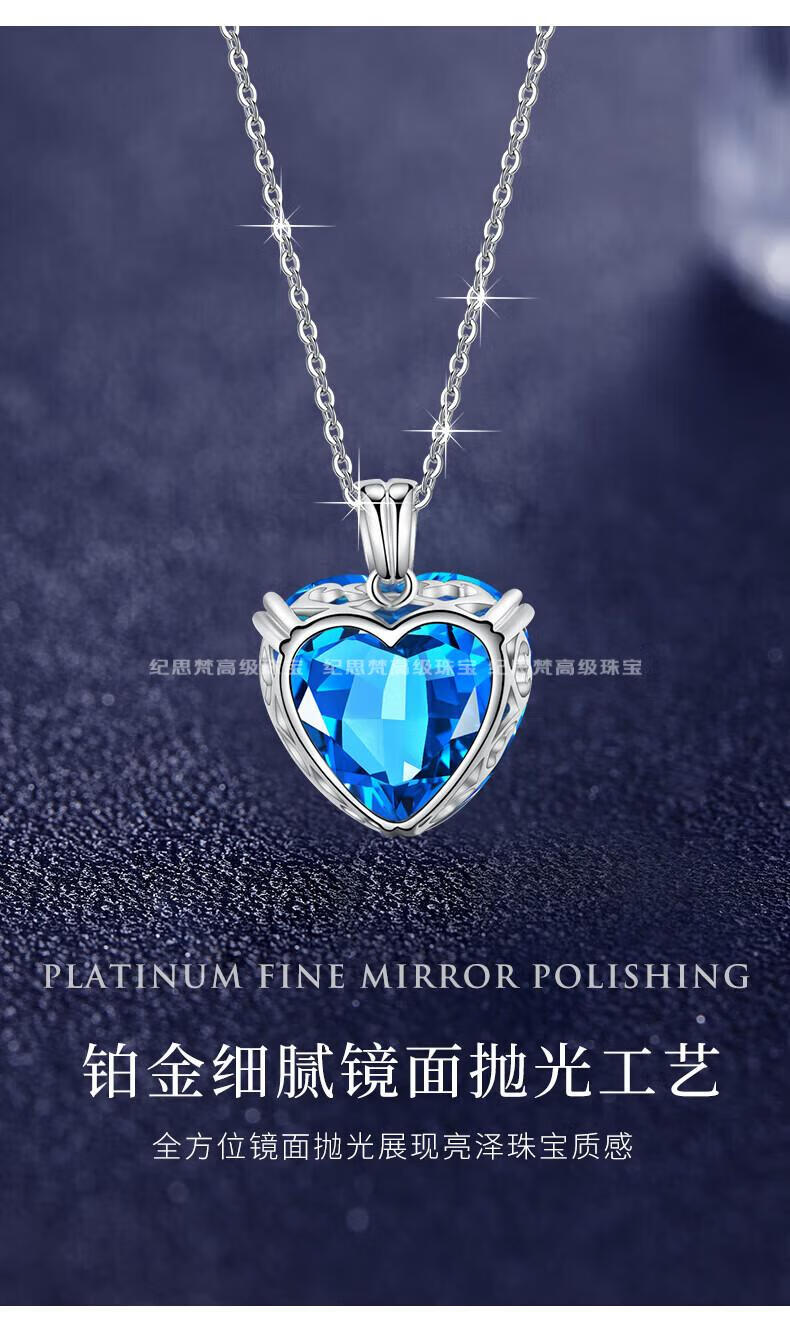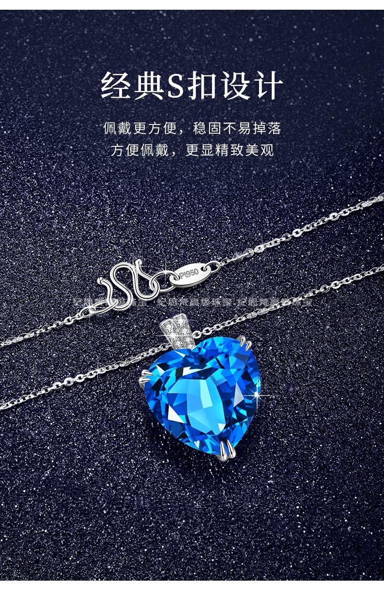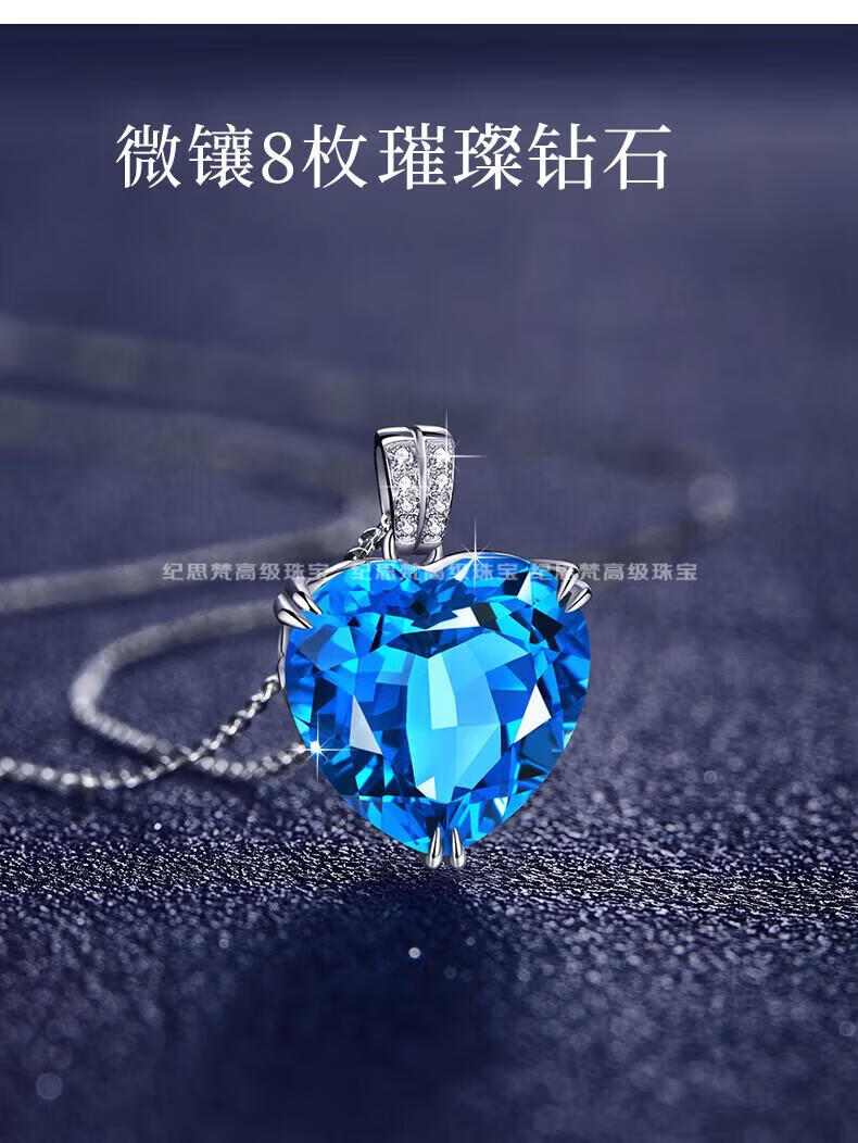 Ji Sifan Light Luxury Ocean Heart Platinum Necklace Women's Fashion Jewelry Valentine's Day Birthday Gift for Girlfriend Perkin Topaz Necklace