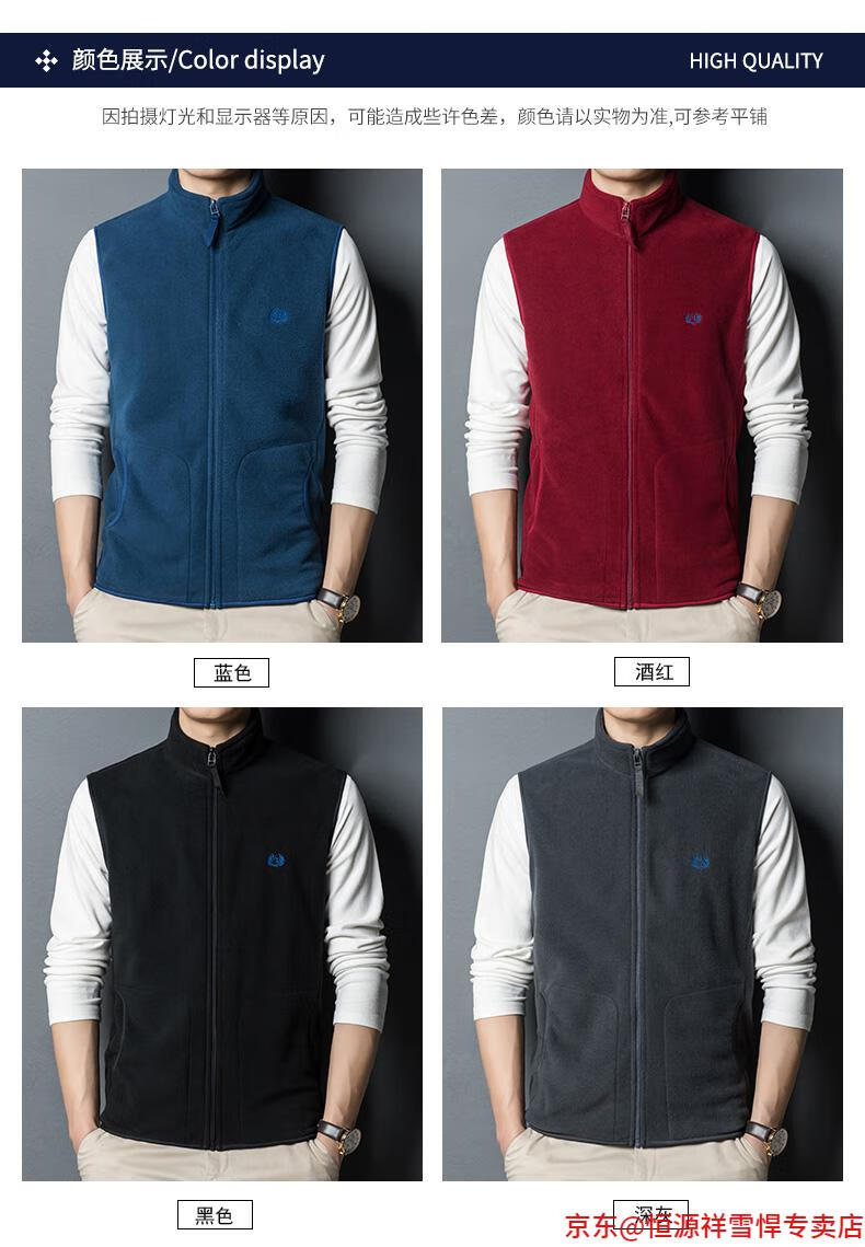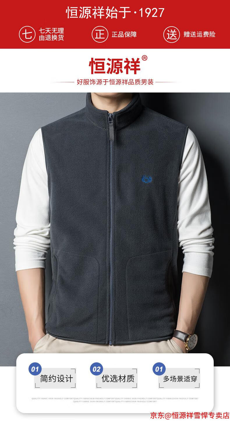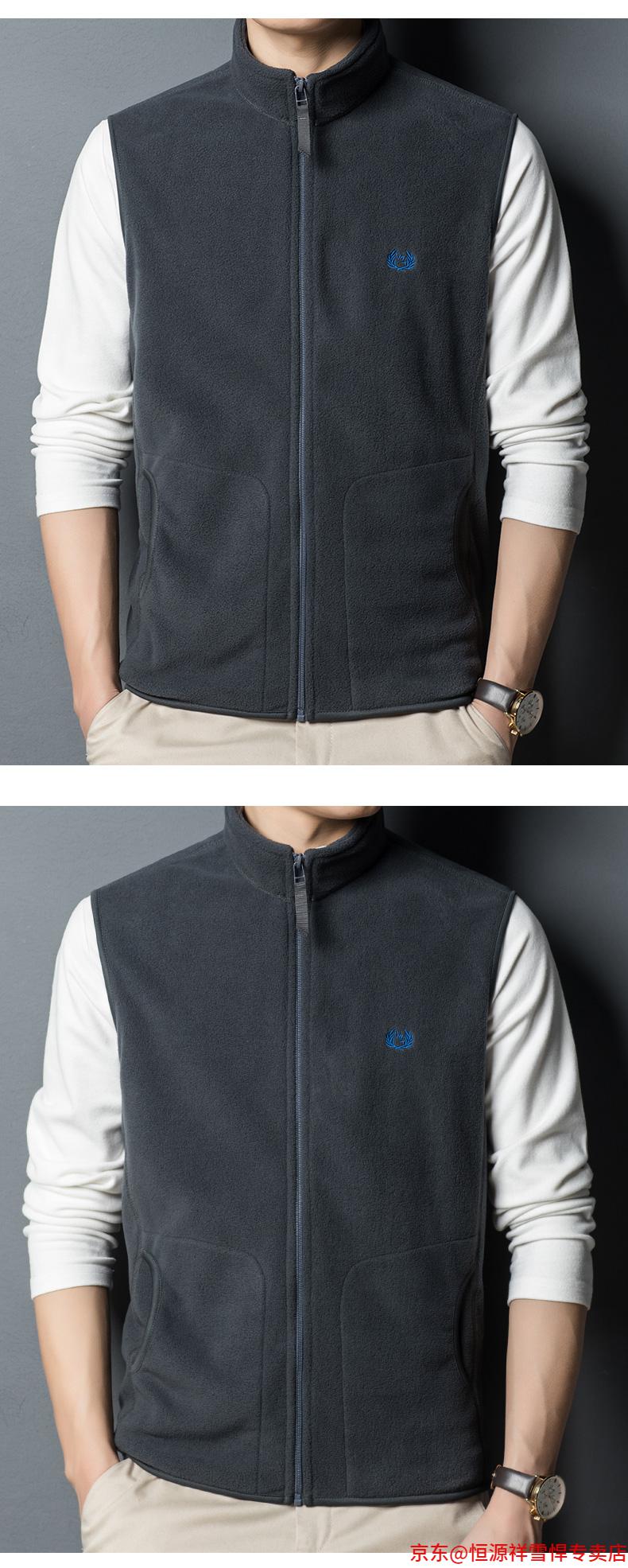 恒源祥品牌高档男装 马甲男春秋无袖坎肩摇粒绒保暖背心运动抓绒马夹秋冬季外套 深灰 170