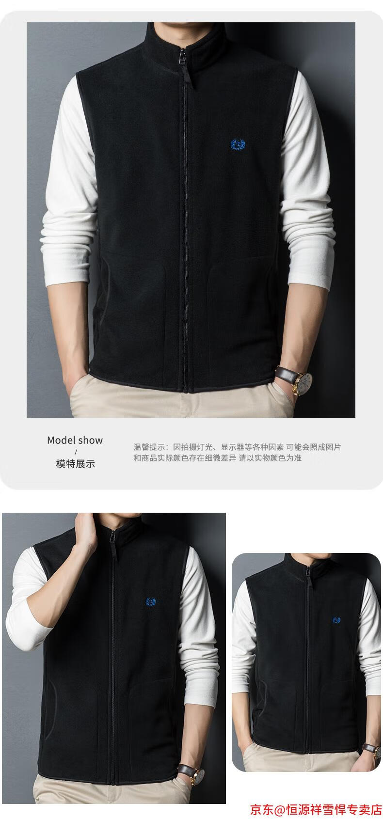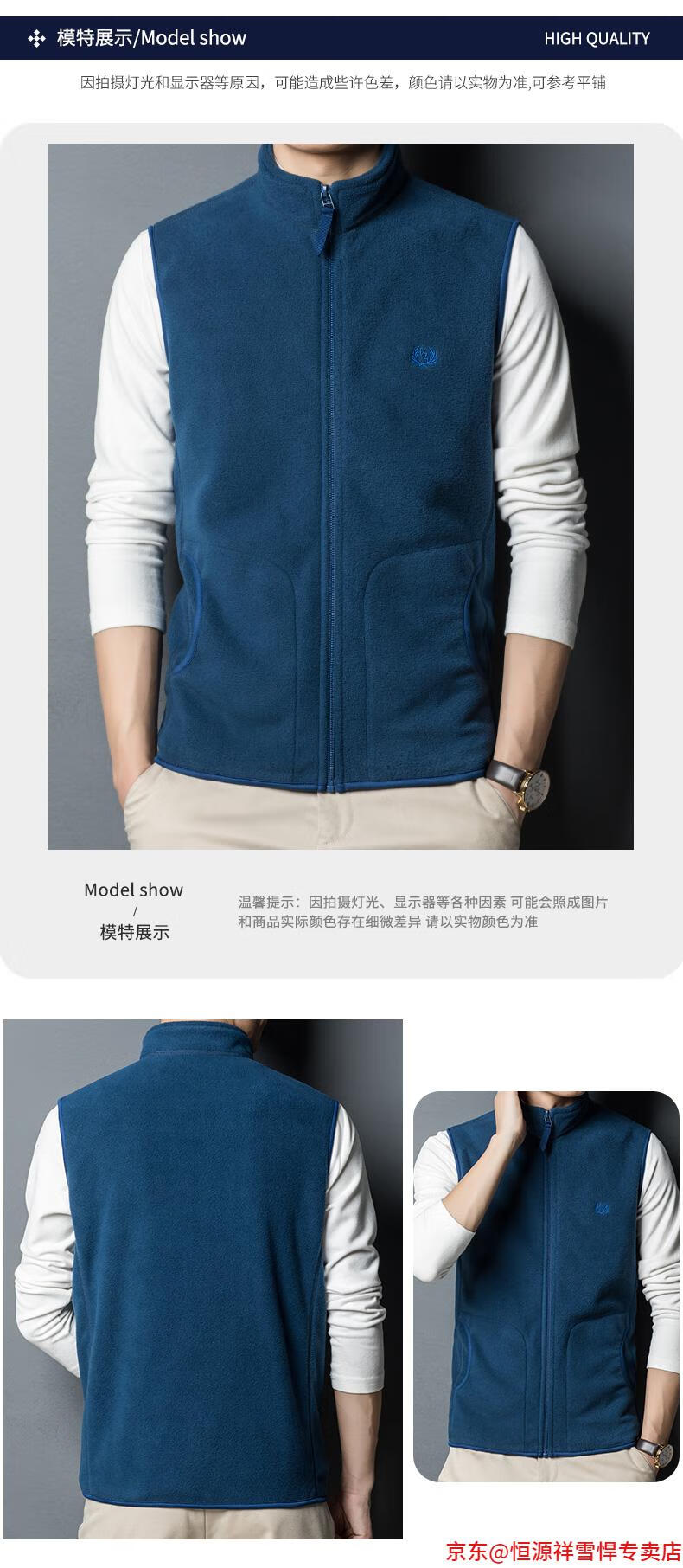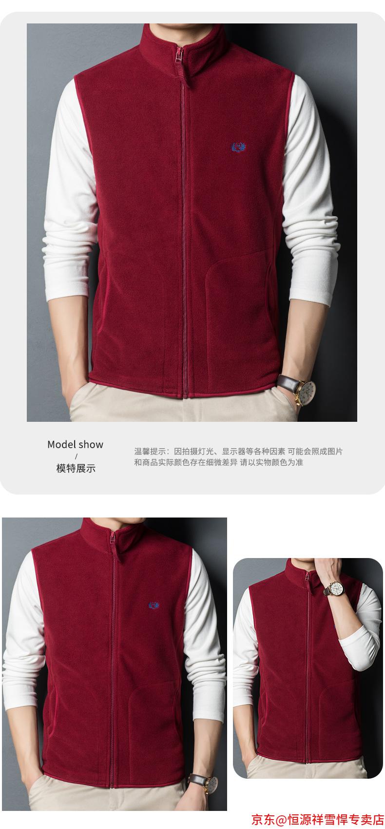 恒源祥品牌高档男装 马甲男春秋无袖坎肩摇粒绒保暖背心运动抓绒马夹秋冬季外套 深灰 170
