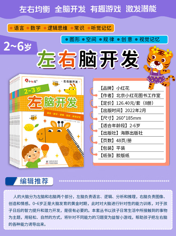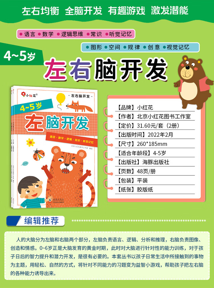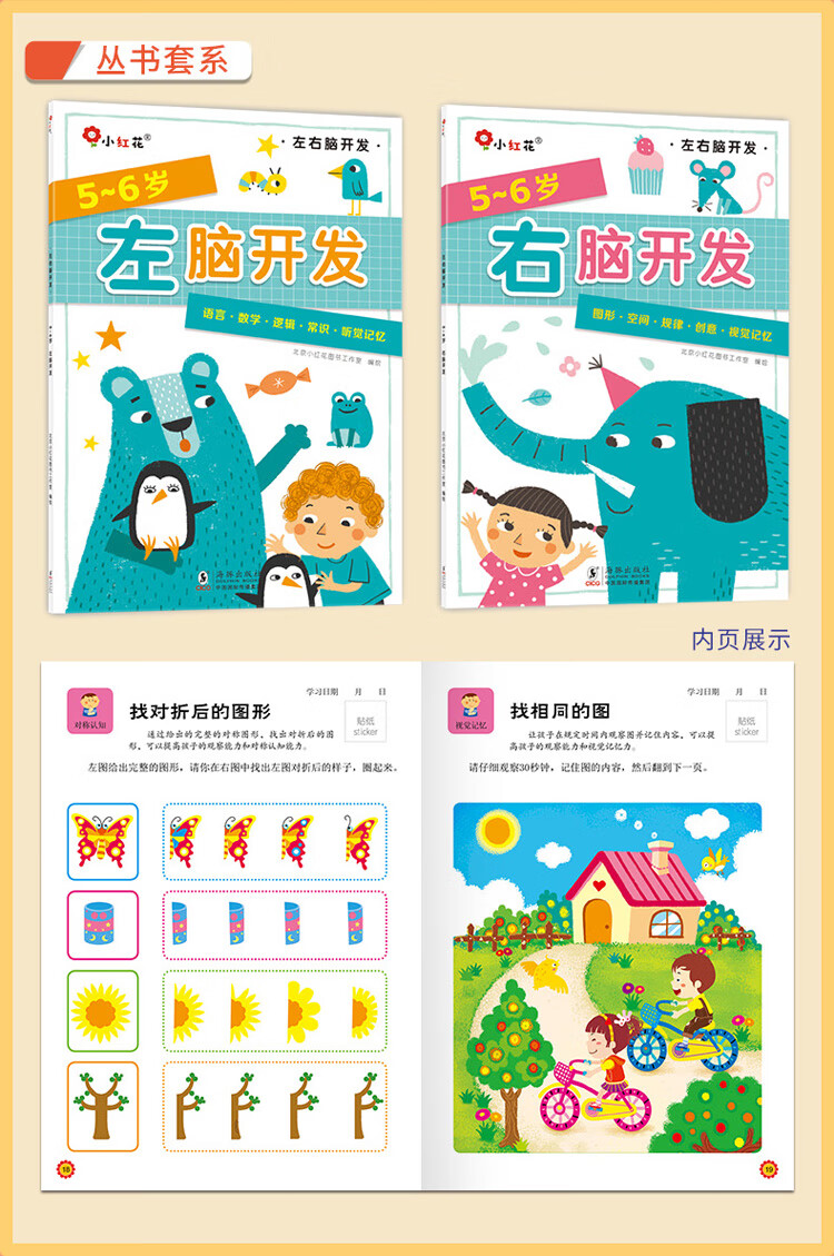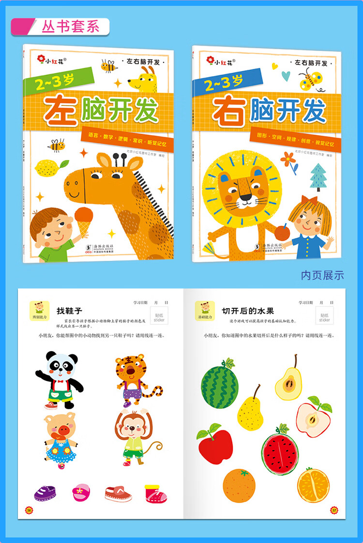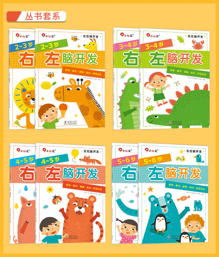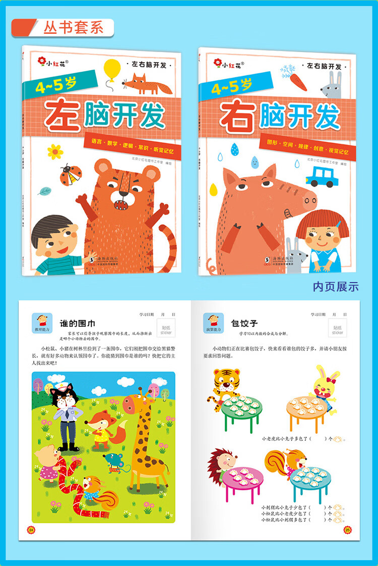 Little Red Flower Left Brain Development Right Brain Development 2-3-6 Years Old Kindergarten Parent-Child Whole-Brain Thinking Puzzle Potential Development Intellectual Training Parent-Child Baby Logic Training Toddler Children Sticker Picture Book Game Toy Sticker Book (8 volumes in total) Left Brain Development Right Brain Development 4-5 Years Old (2 volumes in total) New Edition