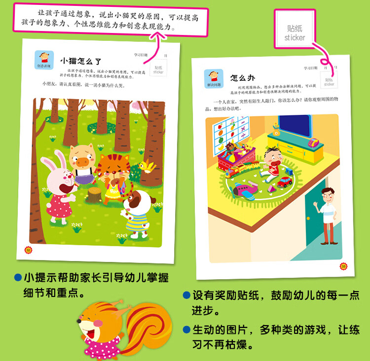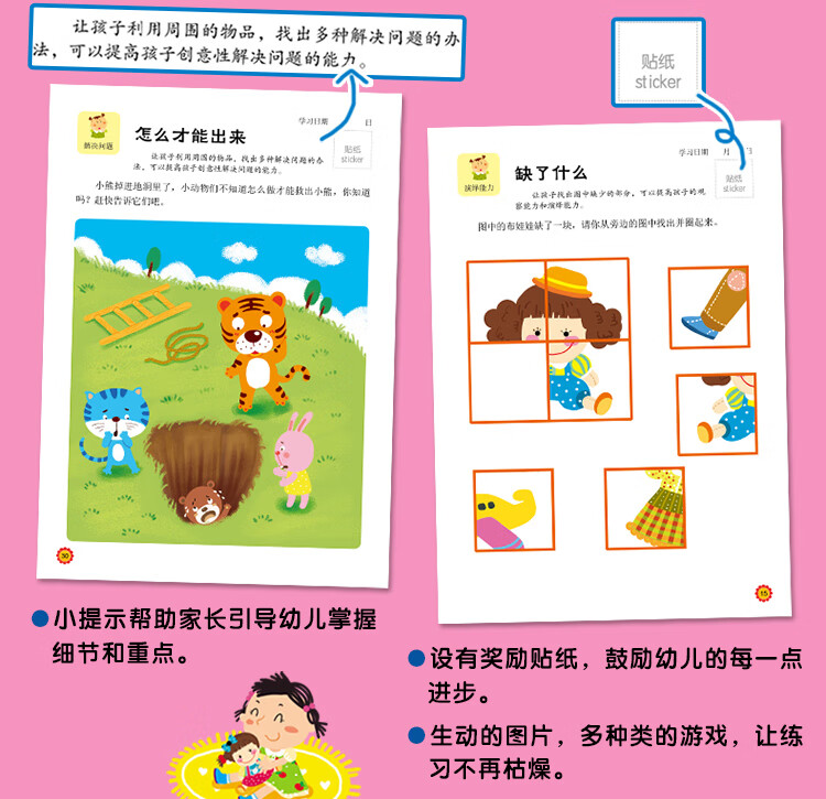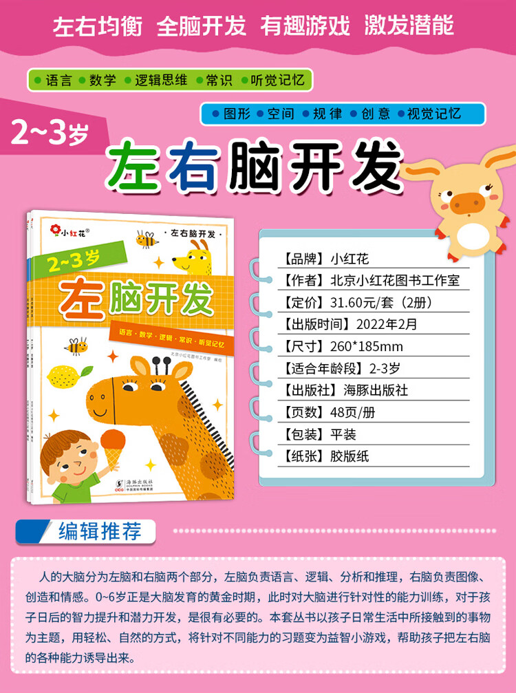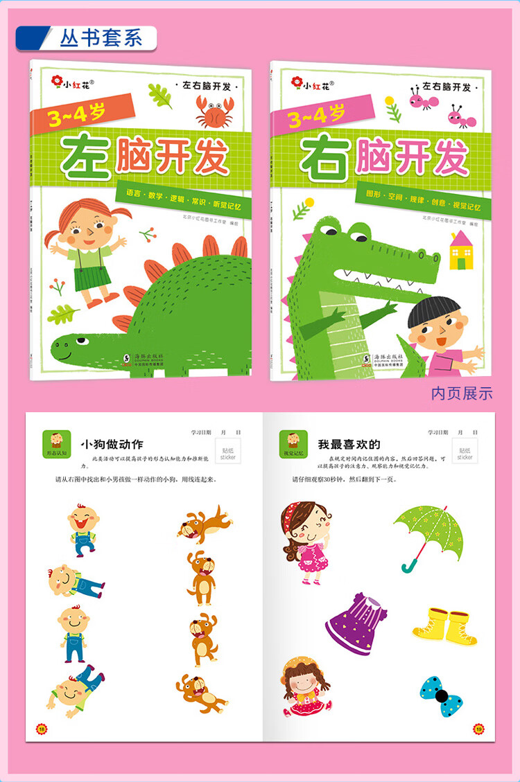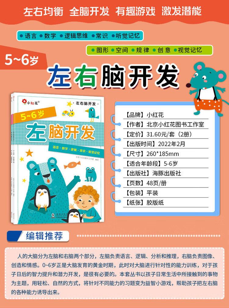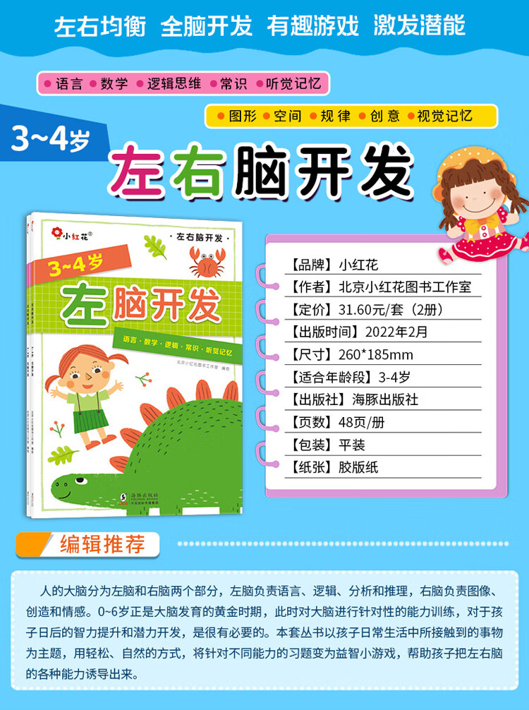 Little Red Flower Left Brain Development Right Brain Development 2-3-6 Years Old Kindergarten Parent-Child Whole-Brain Thinking Puzzle Potential Development Intellectual Training Parent-Child Baby Logic Training Toddler Children Sticker Picture Book Game Toy Sticker Book (8 volumes in total) Left Brain Development Right Brain Development 4-5 Years Old (2 volumes in total) New Edition