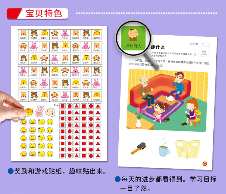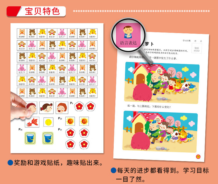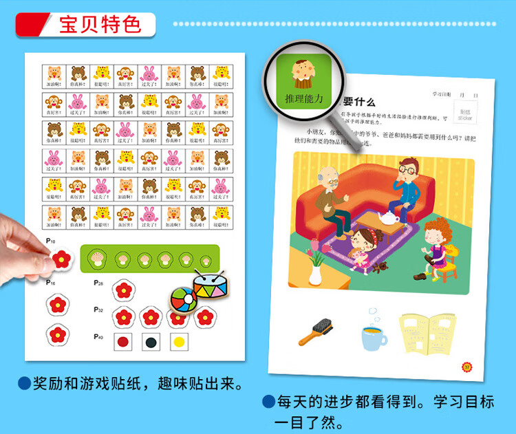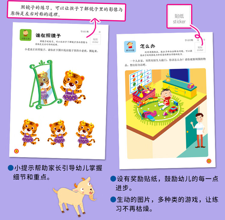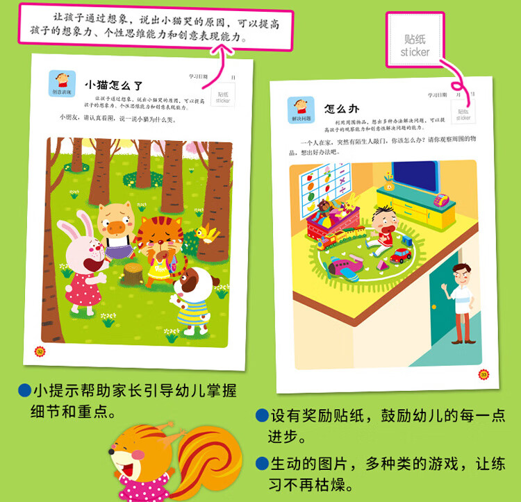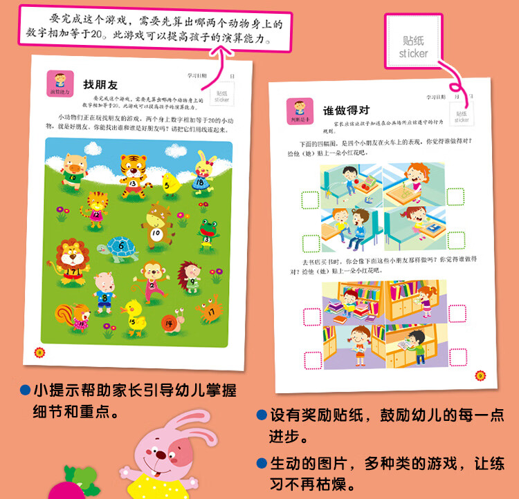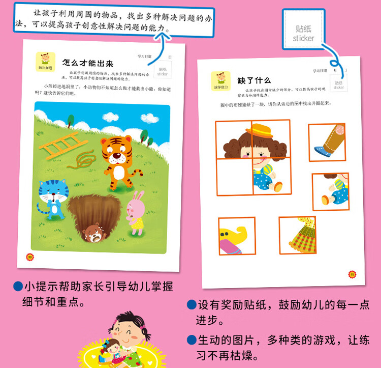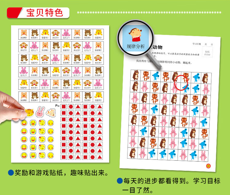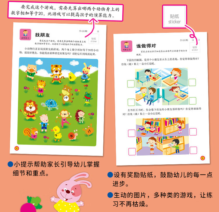 Little Red Flower Left Brain Development Right Brain Development 2-3-6 Years Old Kindergarten Parent-Child Whole-Brain Thinking Puzzle Potential Development Intellectual Training Parent-Child Baby Logic Training Toddler Children Sticker Picture Book Game Toy Sticker Book (8 volumes in total) Left Brain Development Right Brain Development 4-5 Years Old (2 volumes in total) New Edition