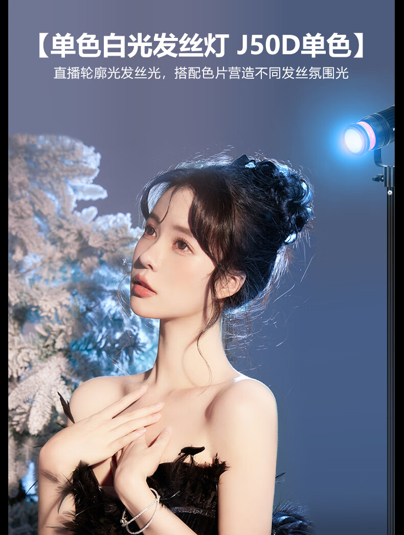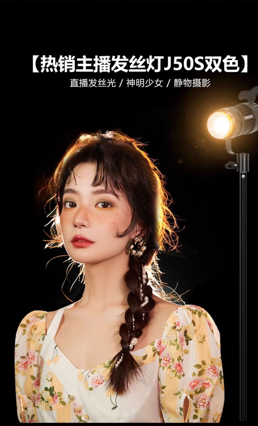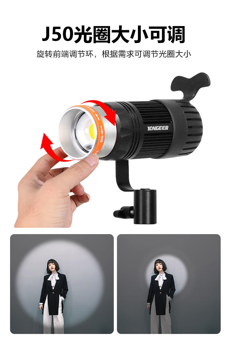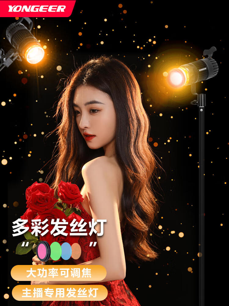 YONGEER 50w live broadcast hair lamp butterfly light fill light anchor special ceiling lamp hair head light backlight outline background atmosphere light adjustable focus spotlight photography photography spotlight J50S-MAX three-color temperature hair lamp with light stand