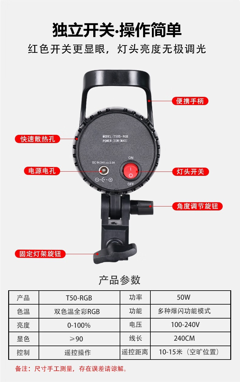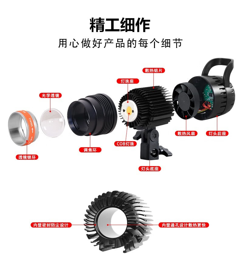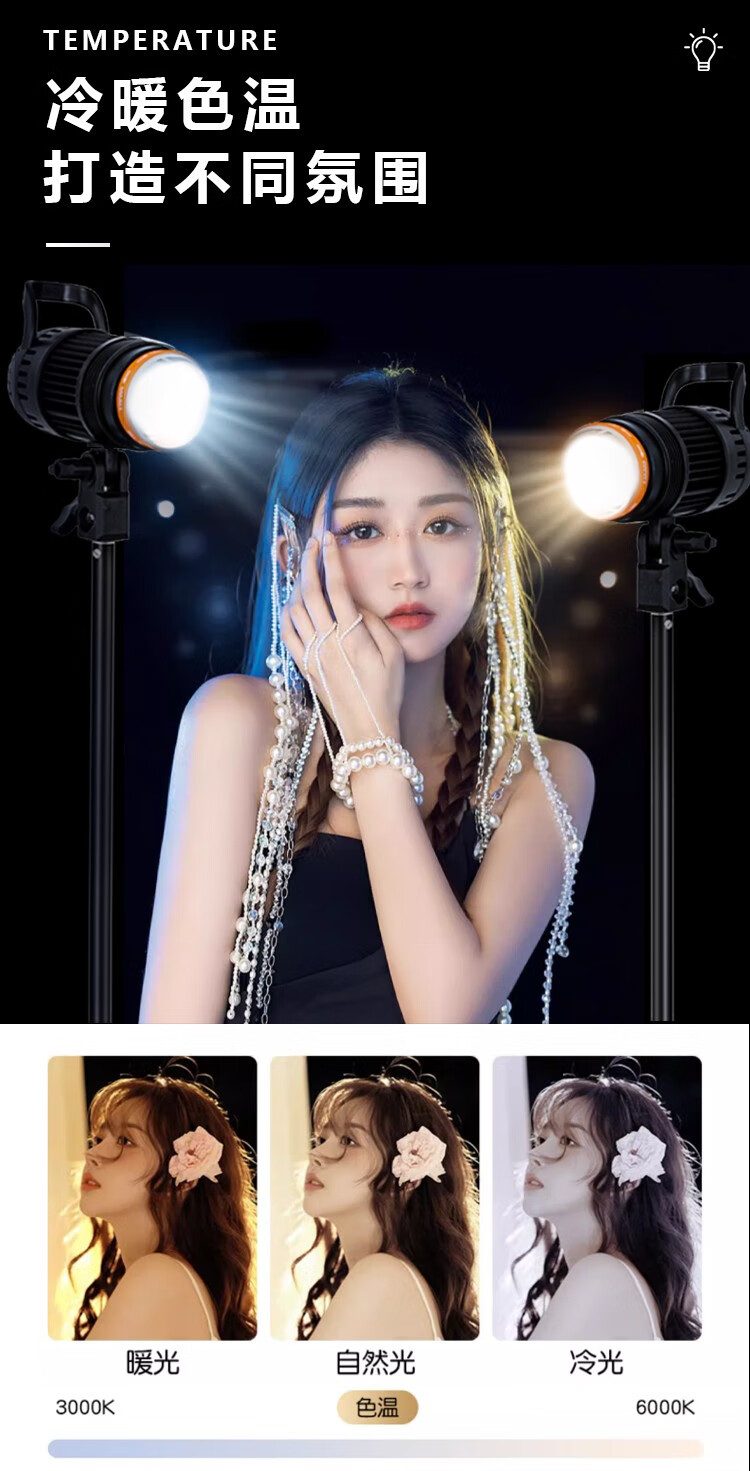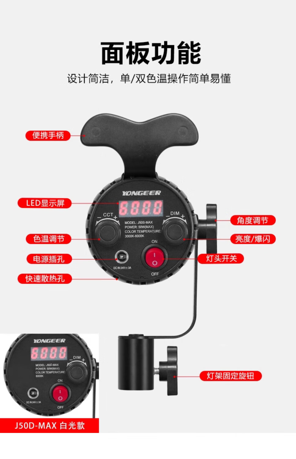 YONGEER 50w live broadcast hair lamp butterfly light fill light anchor special ceiling lamp hair head light backlight outline background atmosphere light adjustable focus spotlight photography photography spotlight J50S-MAX three-color temperature hair lamp with light stand