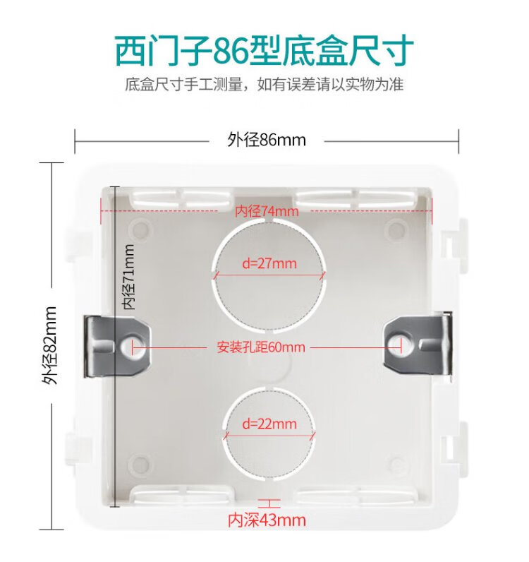 SIEMENS socket bottom box Household wall type 86 switch socket panel bottom box Type 86 universal cassette flame retardant wire box single