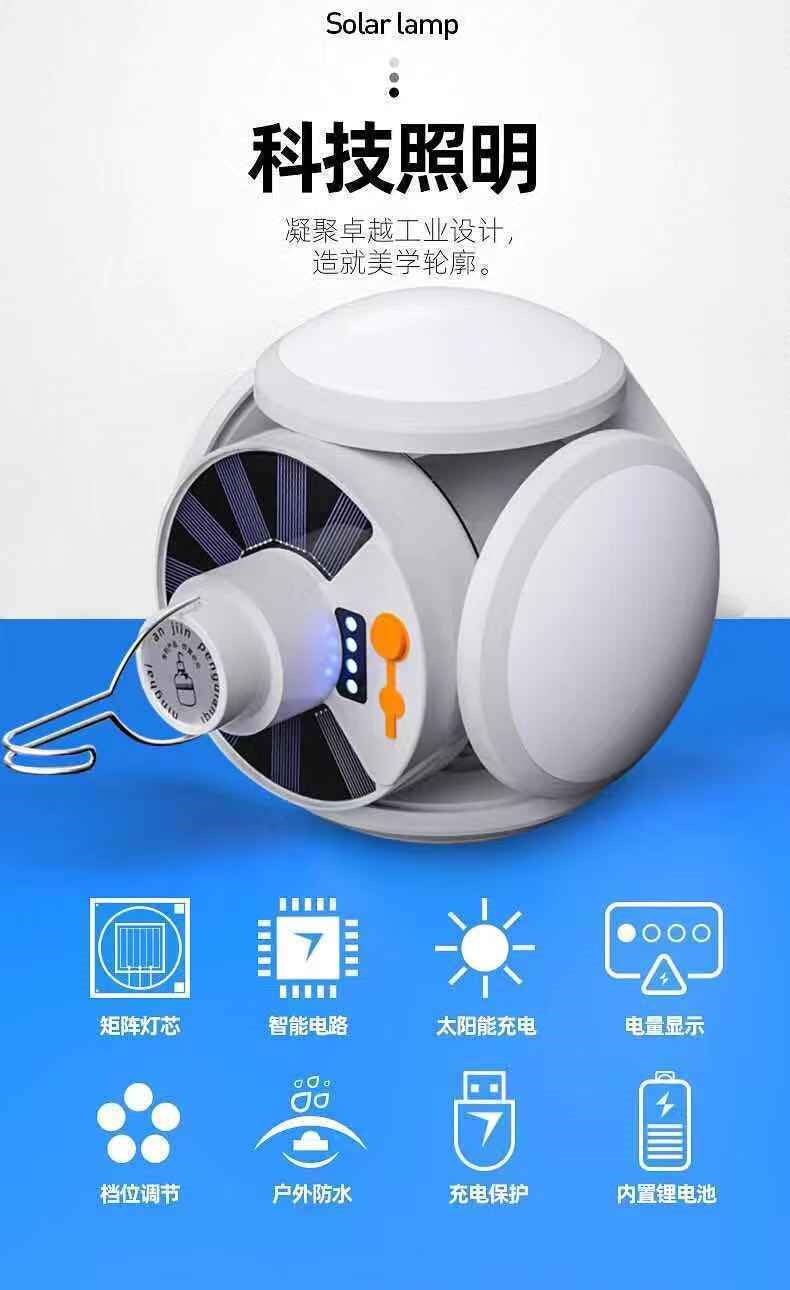 German imported quality solar charging light bulb power outage emergency night market stall household LED bright energy-saving foldable football lamp 20211 100W high-brightness model 150 square meters 20 hours*