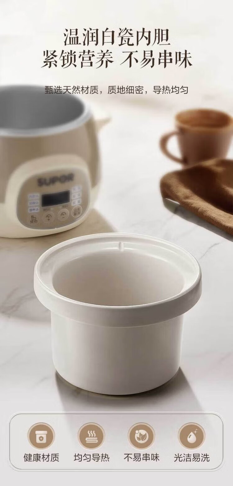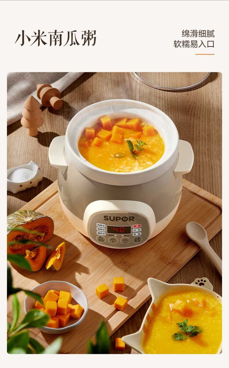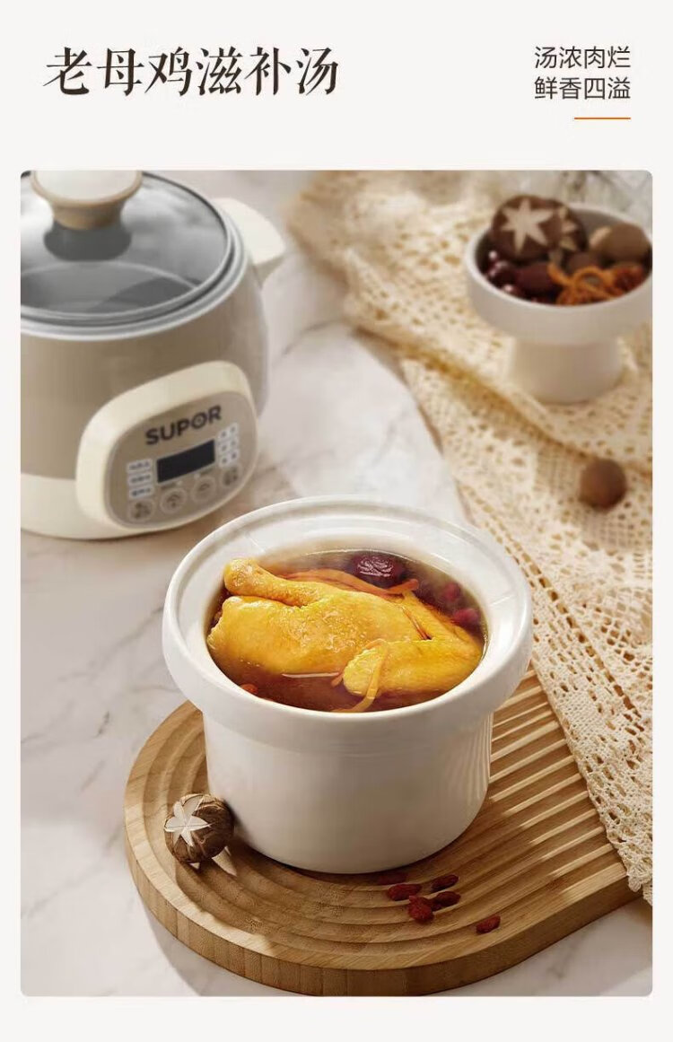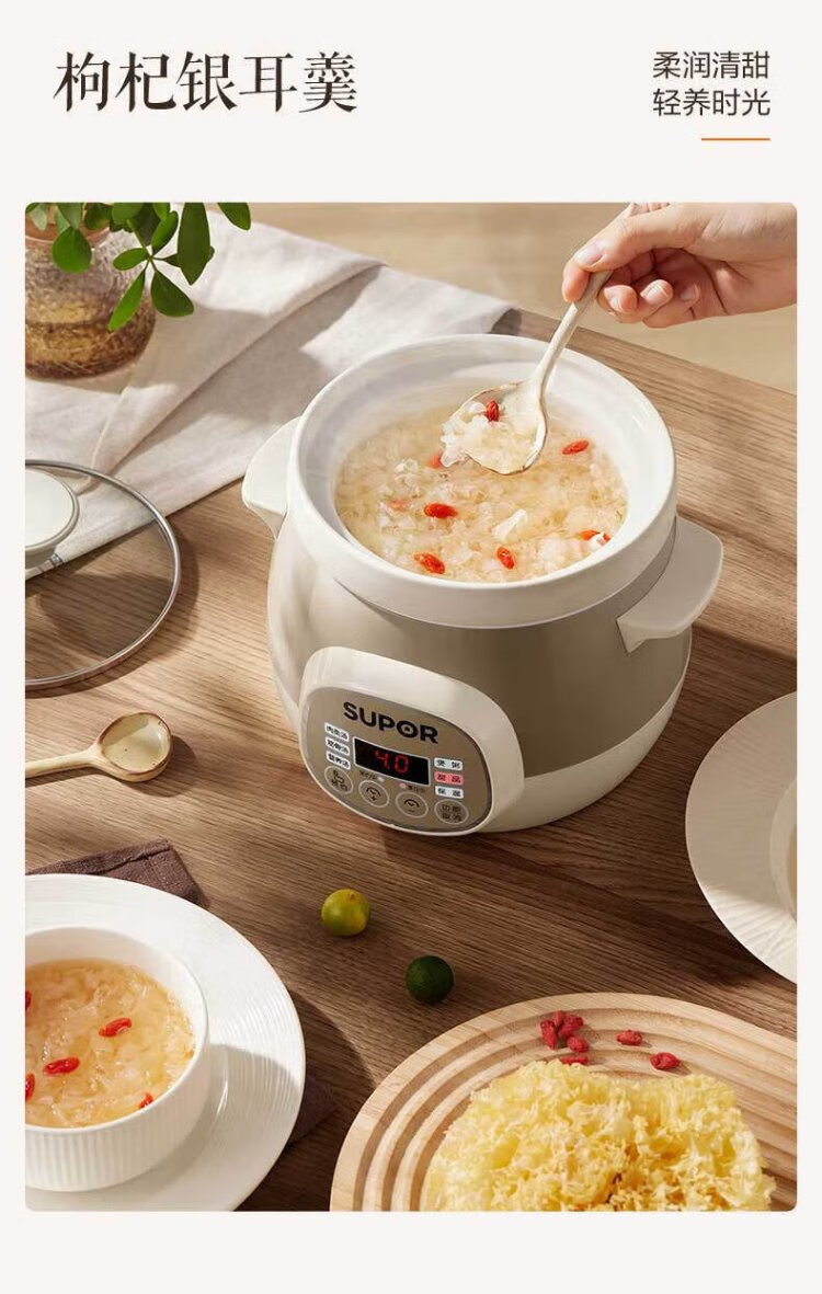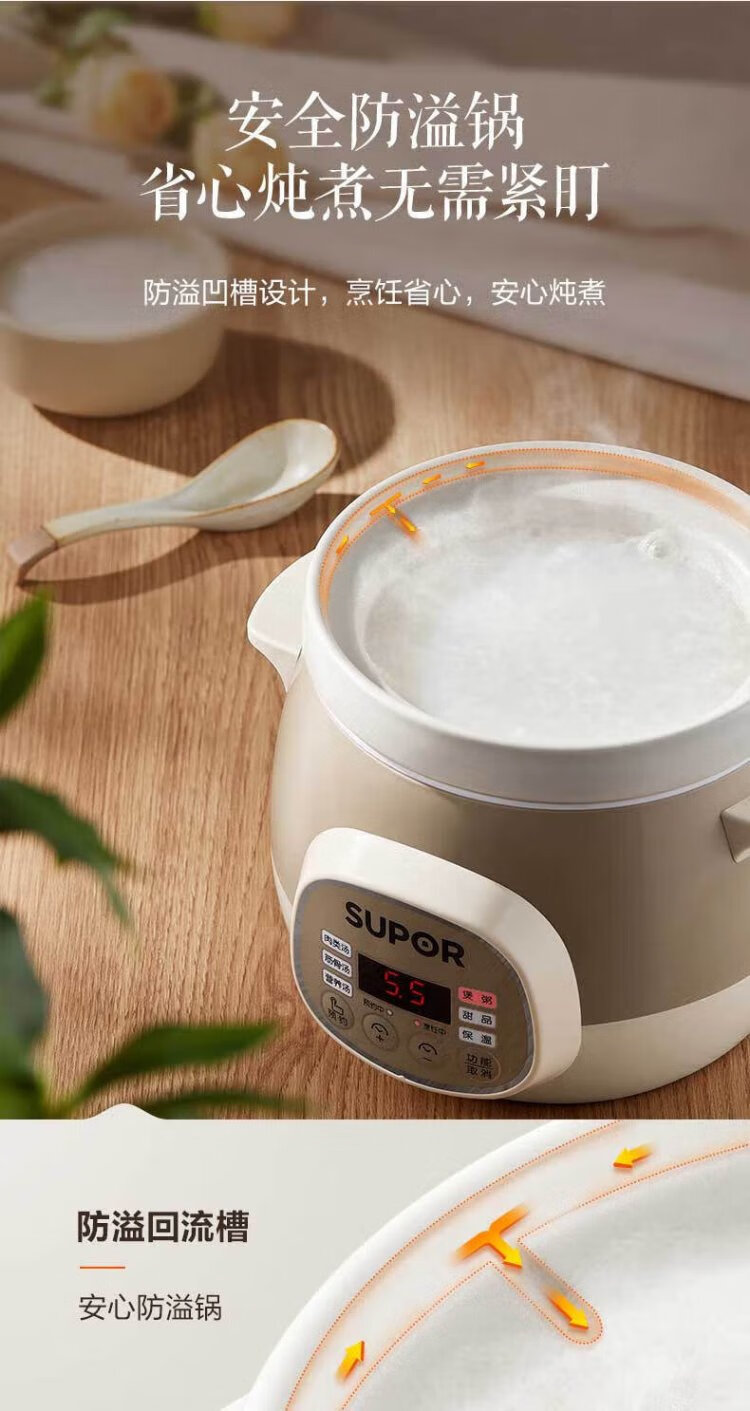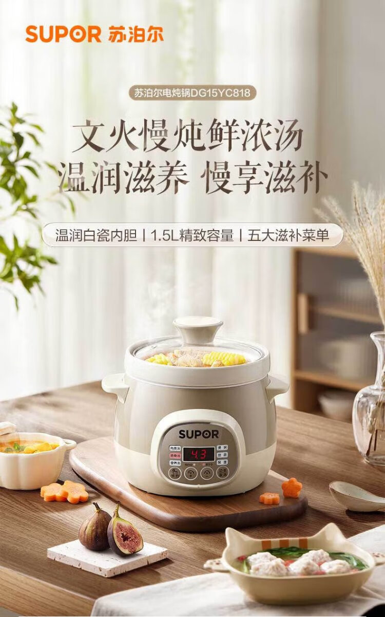 SUPOR electric stew pot electric stew pot small household mini ceramic electric stew pot small casserole porridge artifact soup porridge pot soup pot fully automatic food supplement pot multi-functional stew pot champagne color 1.5L DG15YC818