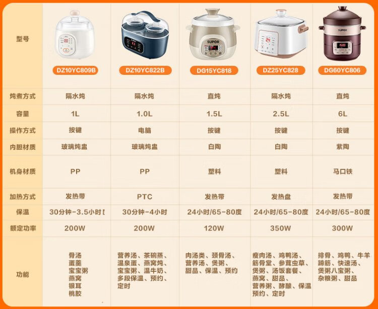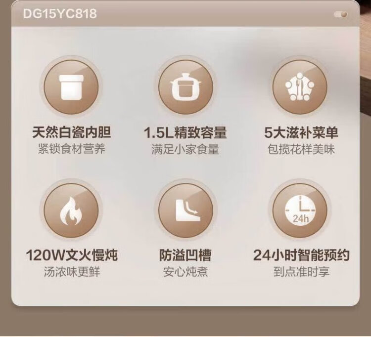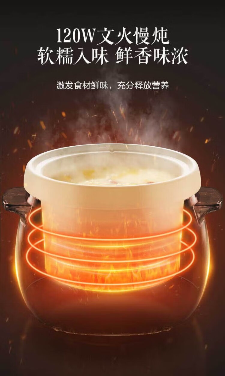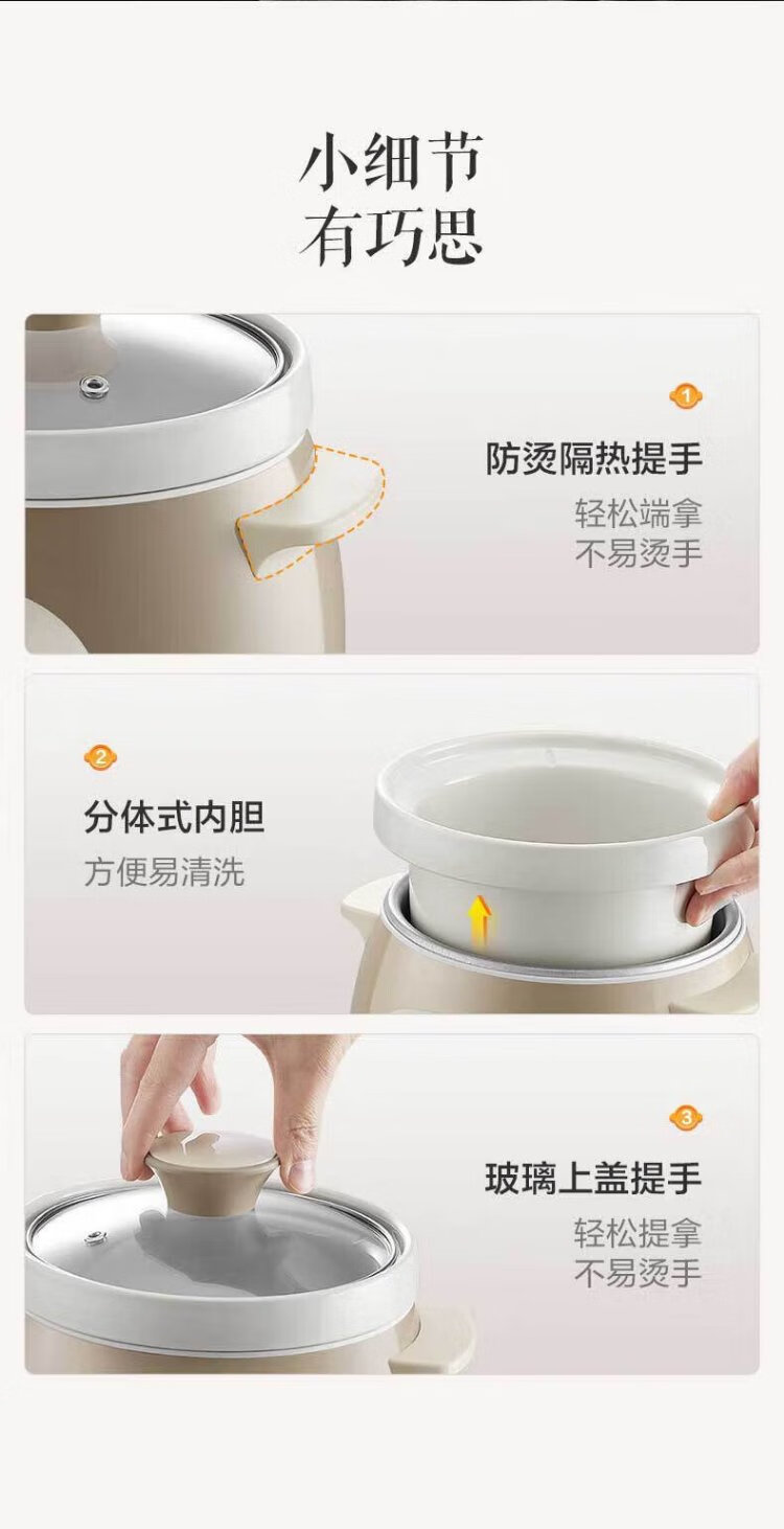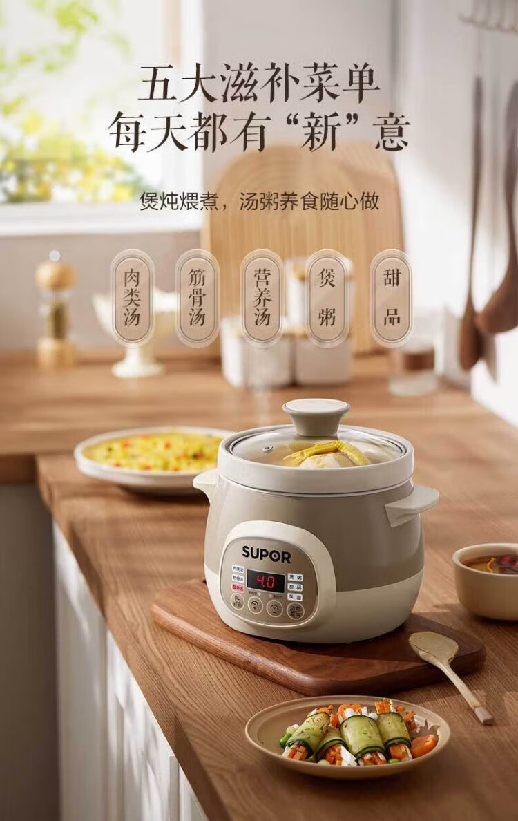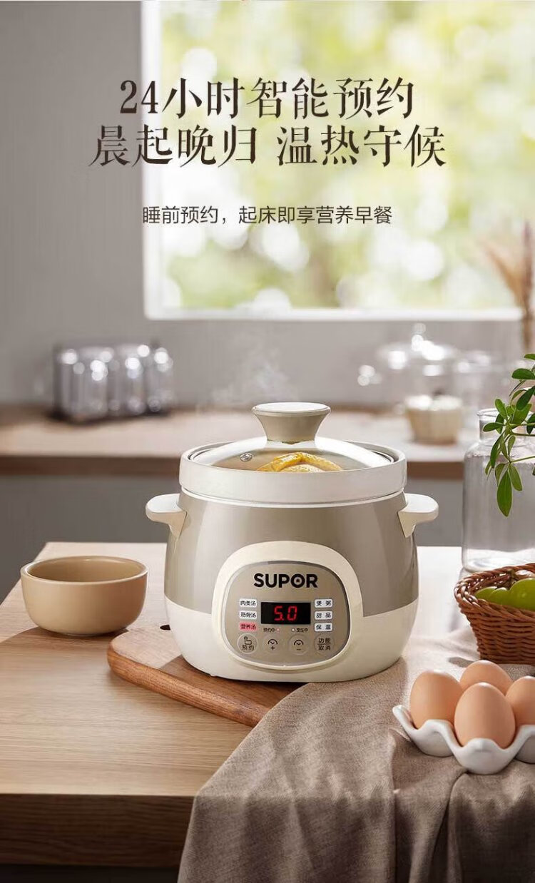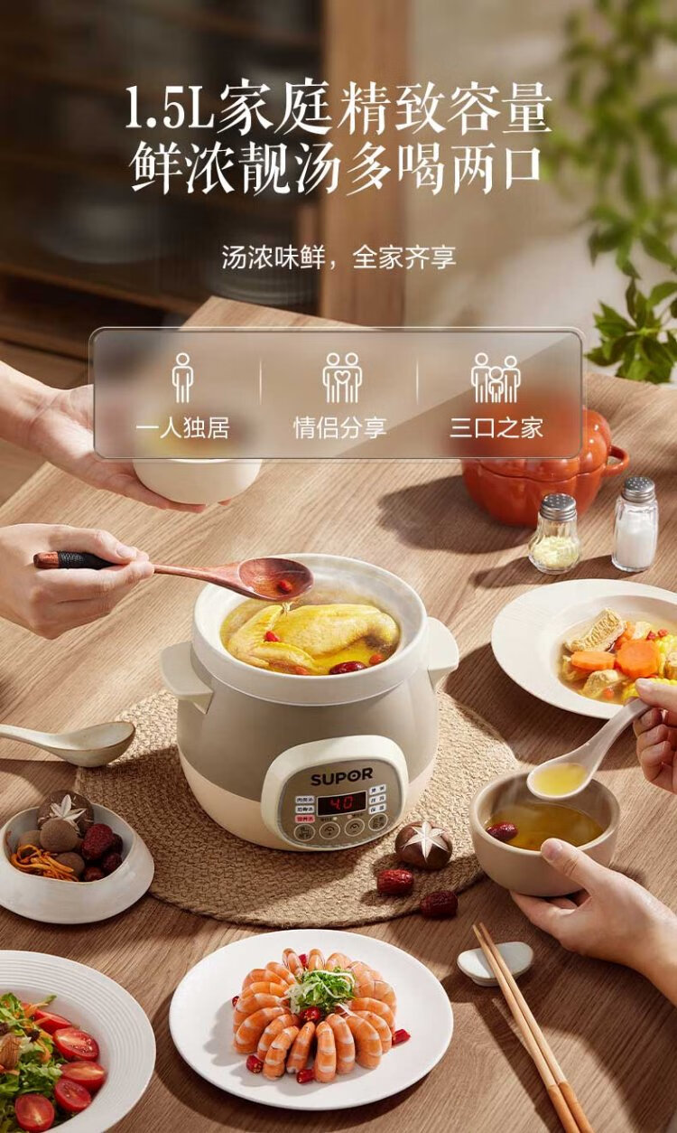 SUPOR electric stew pot electric stew pot small household mini ceramic electric stew pot small casserole porridge artifact soup porridge pot soup pot fully automatic food supplement pot multi-functional stew pot champagne color 1.5L DG15YC818