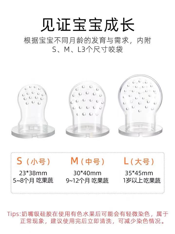 Hisamori Yoshida baby food fruit and vegetable bite bag baby eating fruit food supplement artifact bite bite music molar silicone chewing gum to play mint green with size M bite bag