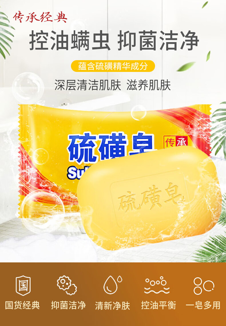 OUSHUFEI sulfur soap cleansing back control greasy itching wash face bath bath shampoo soap family size unisex sulfur soap 85g 5 pieces one soap multi-purpose