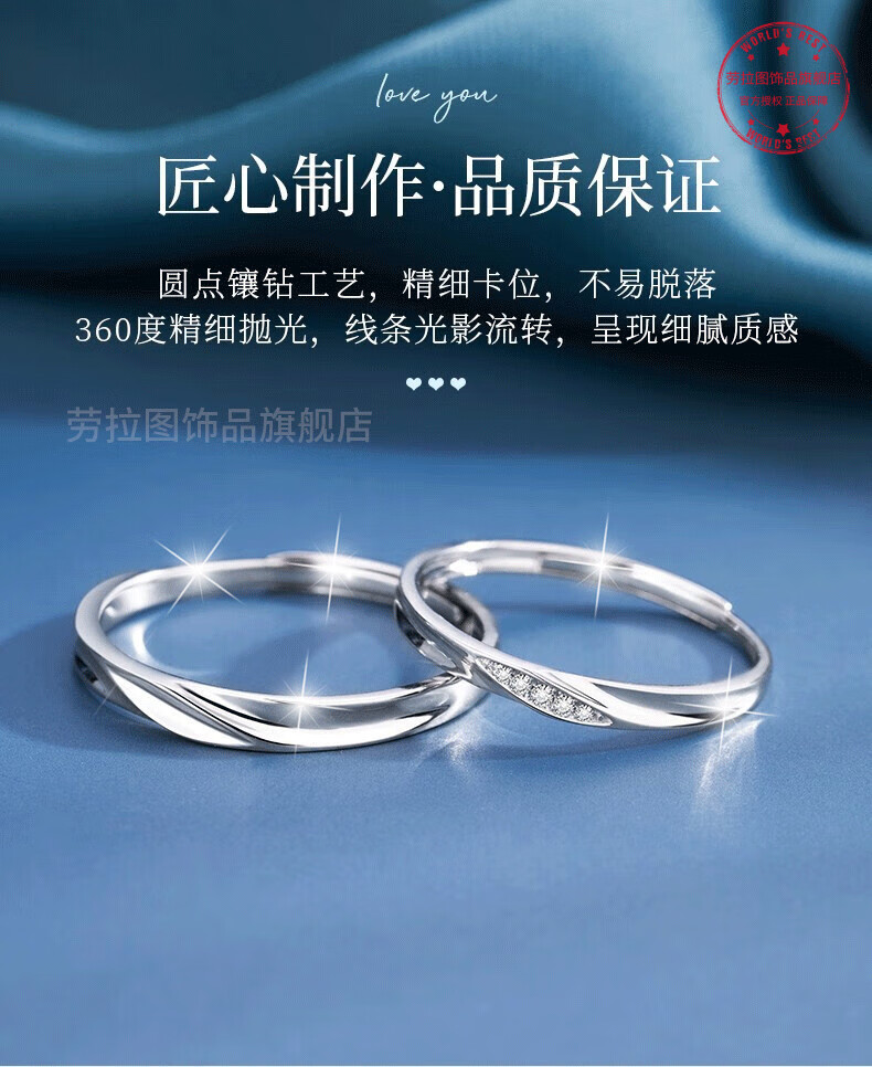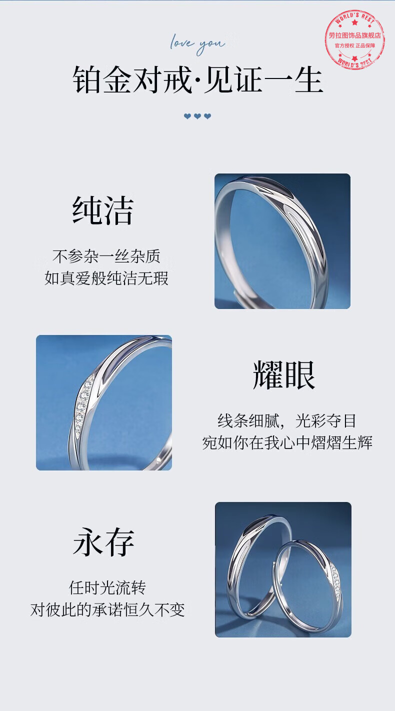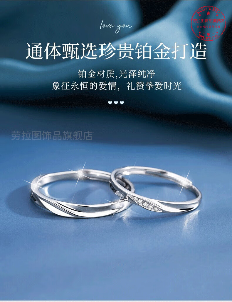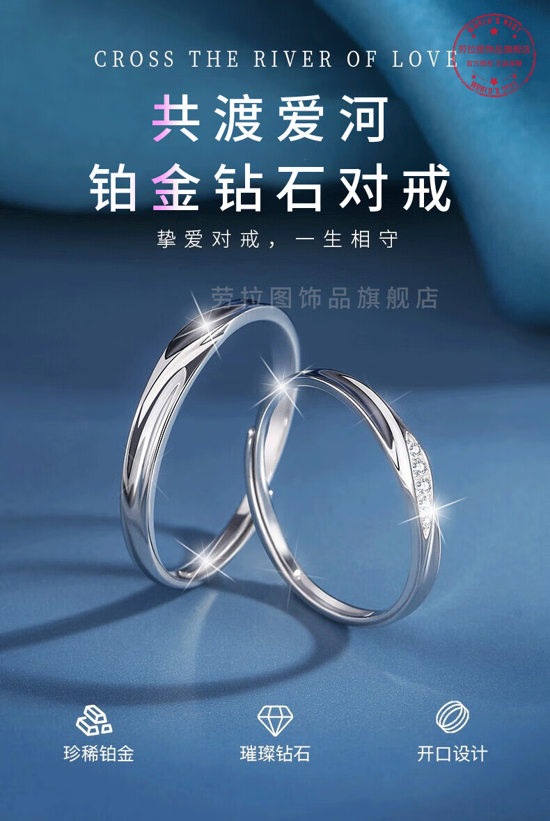LAOLATU platinum ring for women PT950 diamond platinum pair ring open wedding ring Chinese Valentine's Day gift for girlfriend and wife pt950 platinum pair ring live mouth adjustable