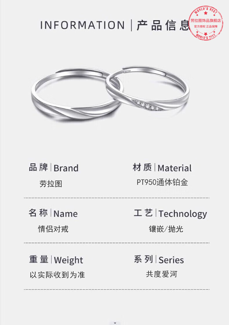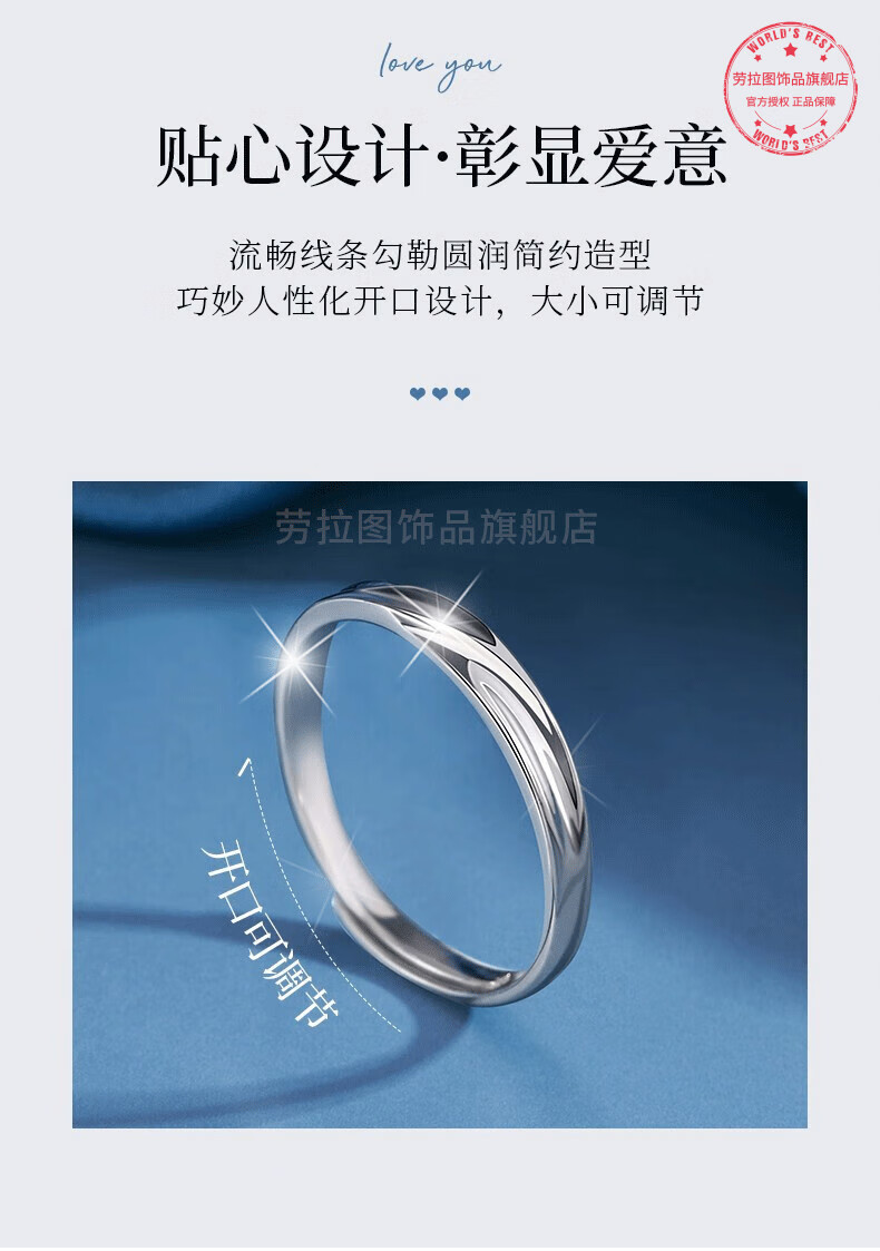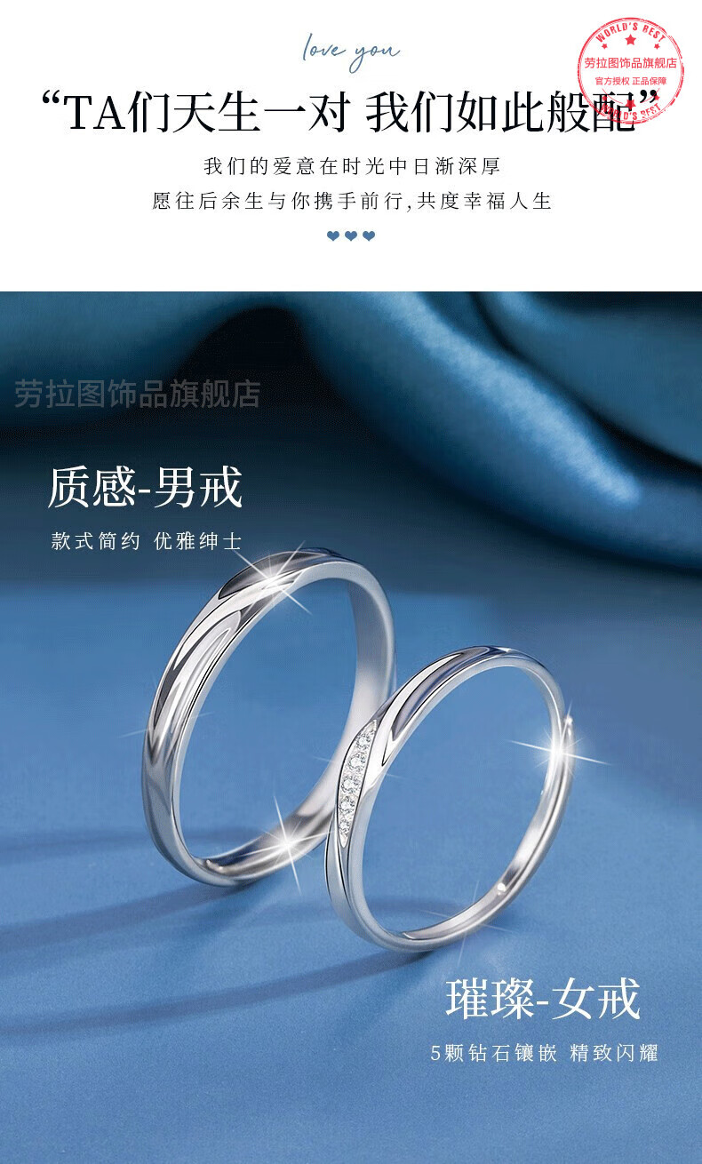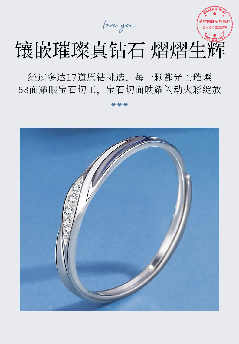LAOLATU platinum ring for women PT950 diamond platinum pair ring open wedding ring Chinese Valentine's Day gift for girlfriend and wife pt950 platinum pair ring live mouth adjustable