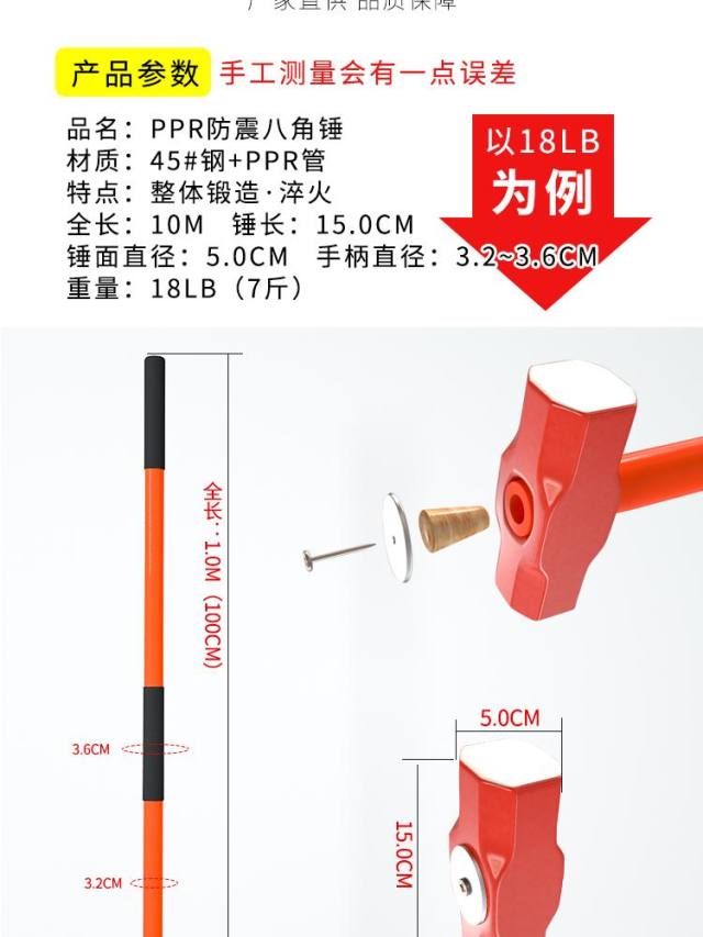 Xiangjile large octagonal hammer 2 pounds 3 pounds 6 pounds 7 pounds 8 pounds 12 pounds 14 pounds hammer heavy wall smashing 14 pounds handle octagonal hammer with handle about 12 Jin Jin is equal to 0.5 kilograms