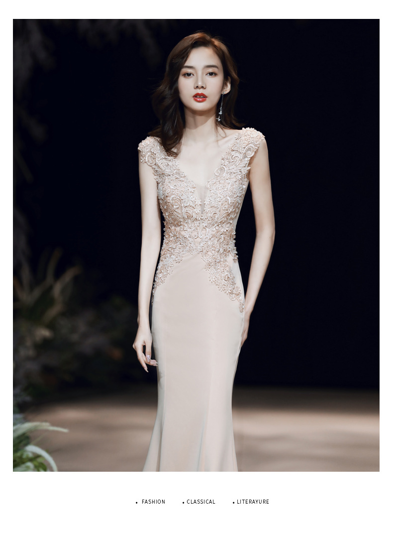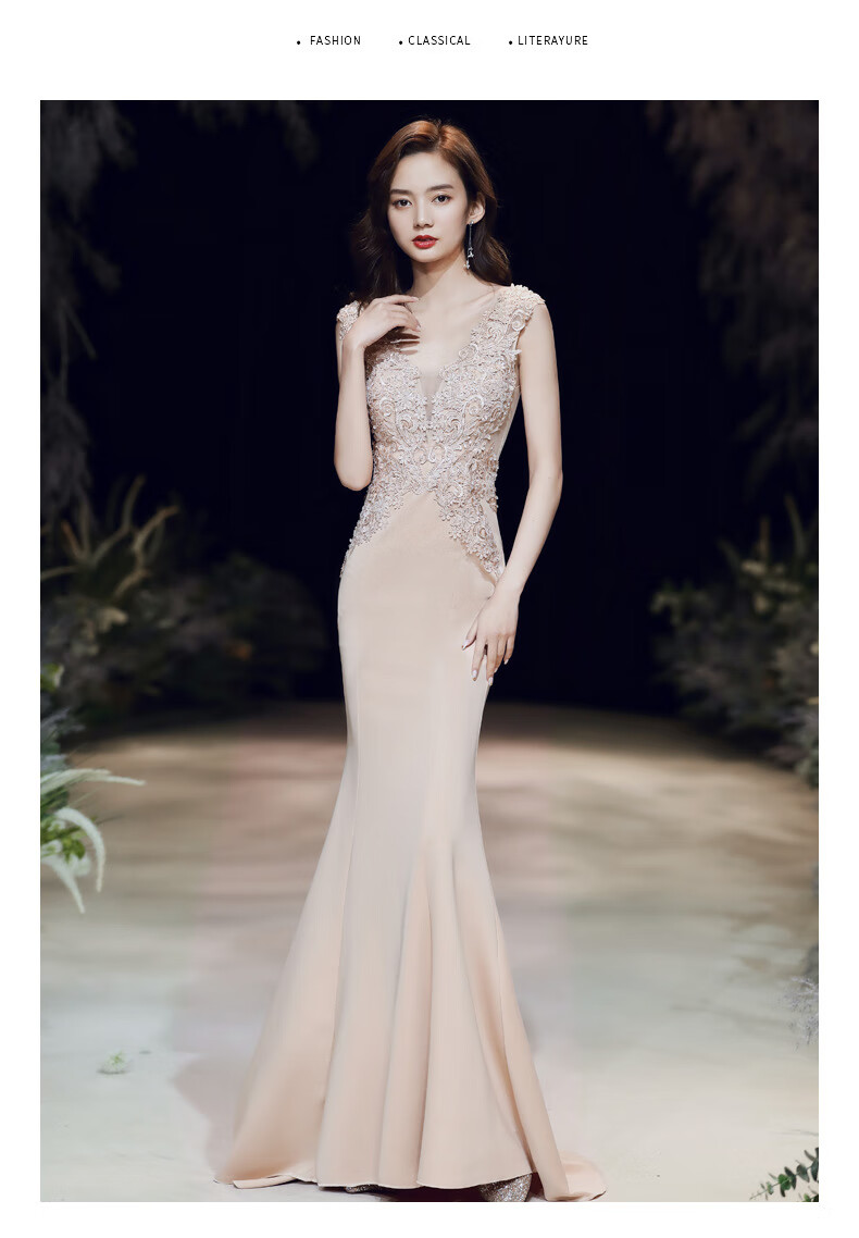 Kuhuke evening dress for women 2022 new high-end temperament slimming 2022 summer banquet aura queen temperament sexy fishtail apricot fishtail long style M
