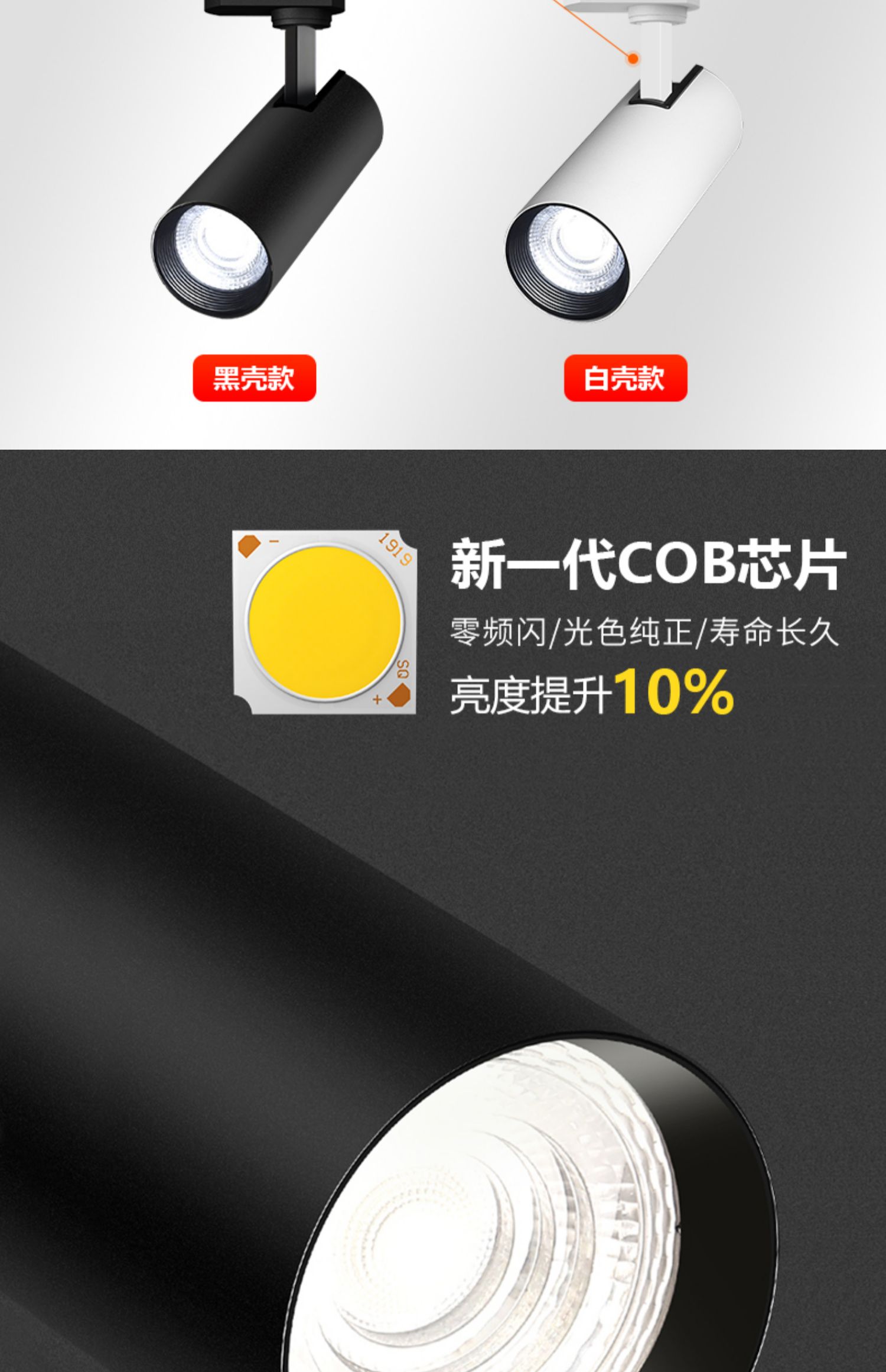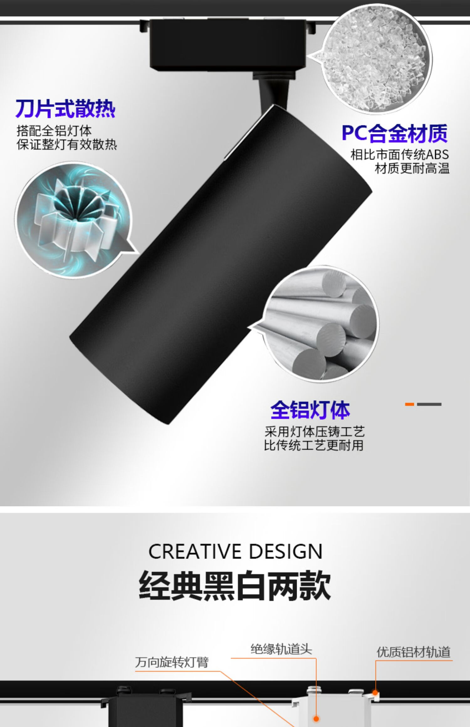 Aroden third-line track spotlight second-line cob20w clothing store 30 watts 40W shop commercial exposed exhibition hall led track light third-line flagship model 20W-black shell white light