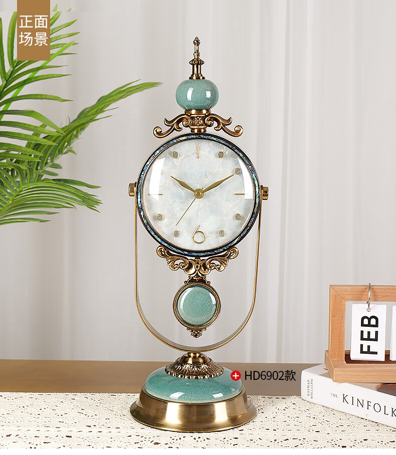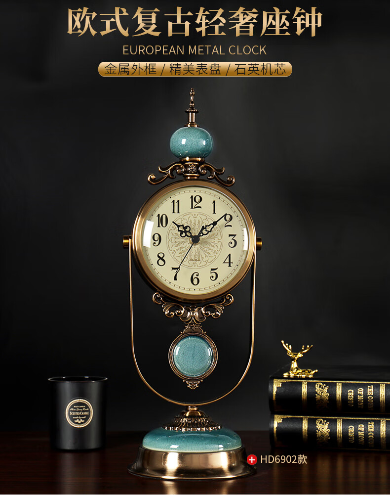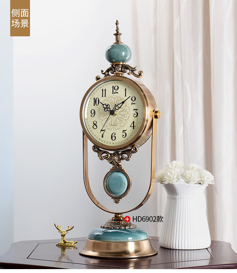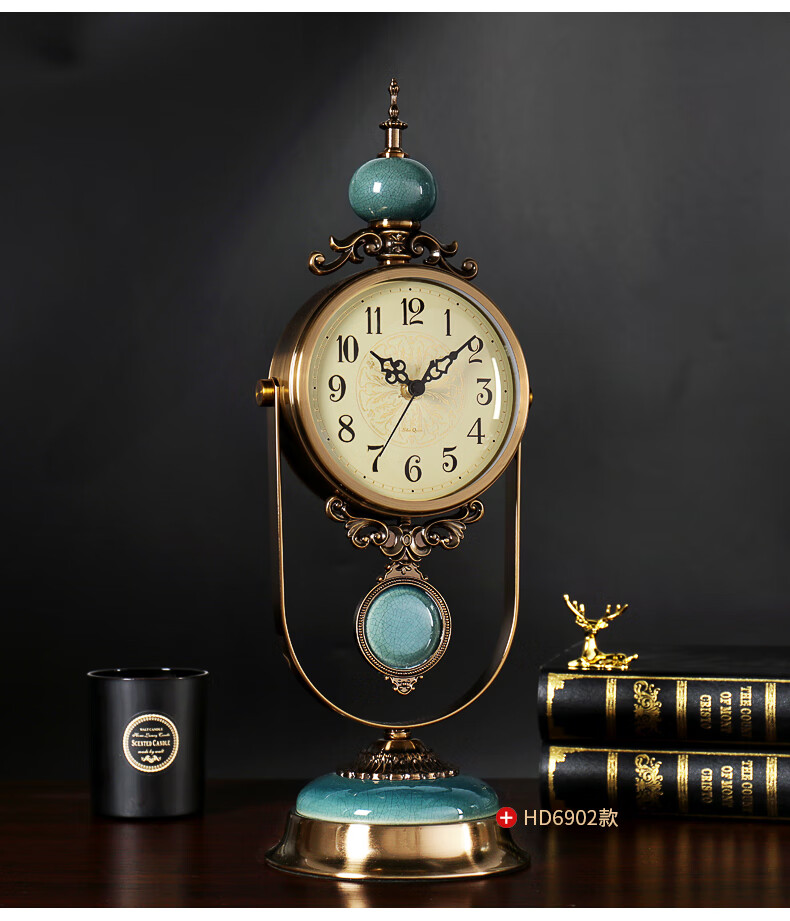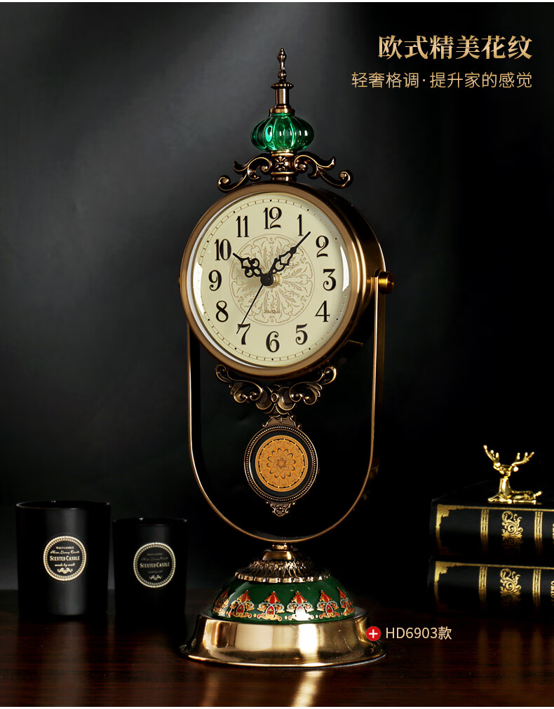 Hanshi (Hense) table clock living room clock display table clock clock ornaments desktop clock home light luxury decorative pendulum clock HD6902 emerald glass model HD6903