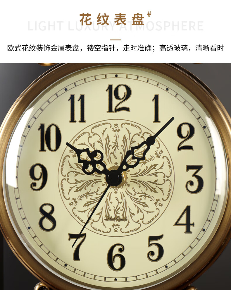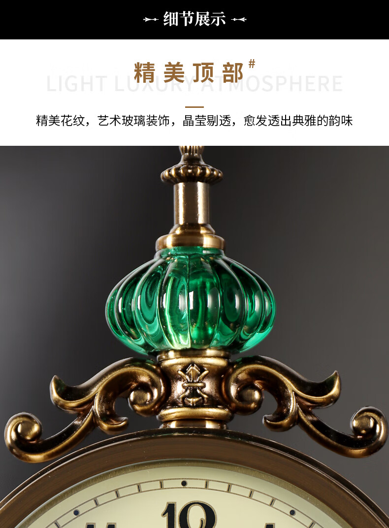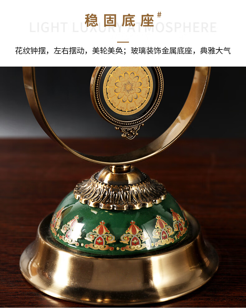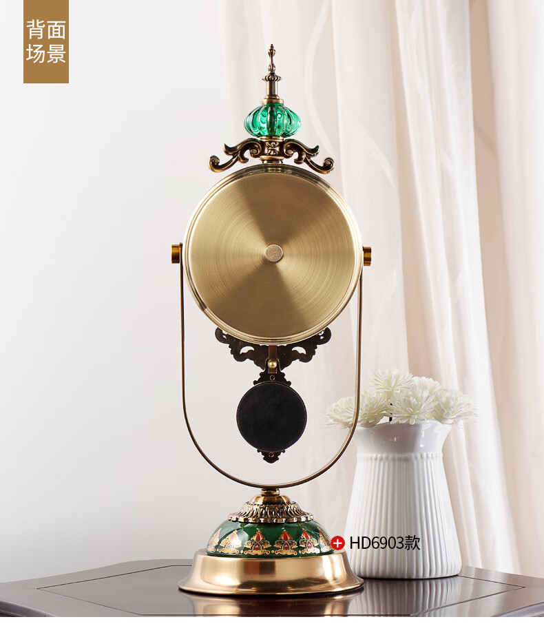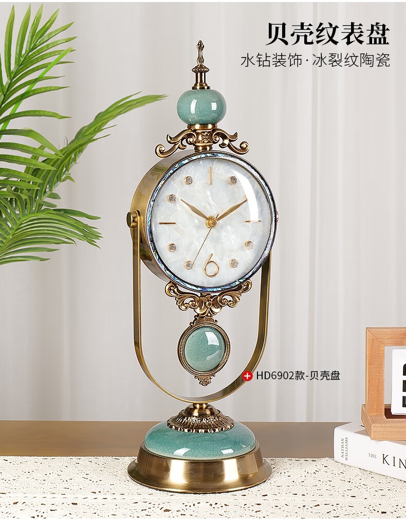Hanshi (Hense) table clock living room clock display table clock clock ornaments desktop clock home light luxury decorative pendulum clock HD6902 emerald glass model HD6903