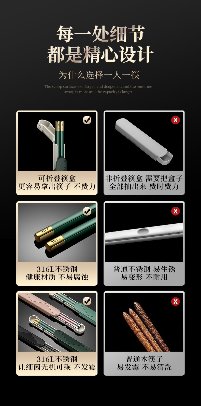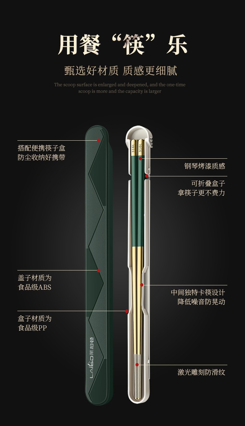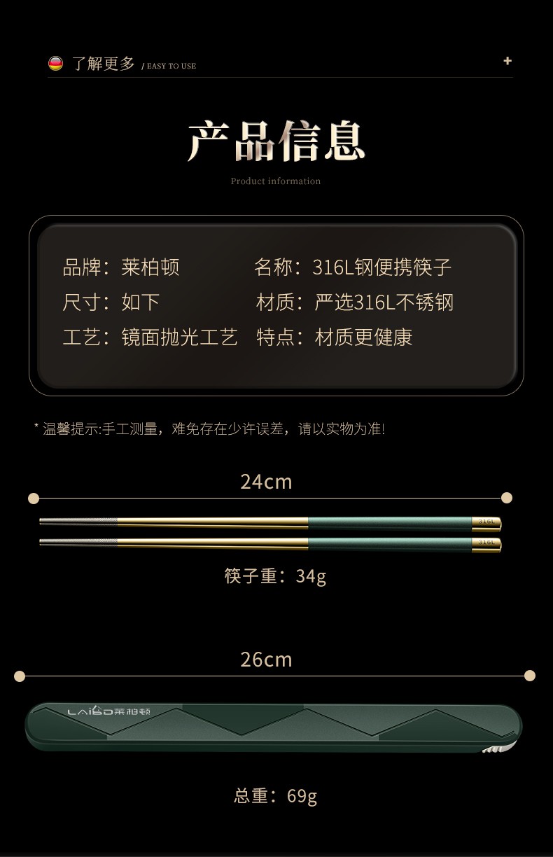 Labton 316L Stainless Steel Chopstick Set Boxed Single Person Portable Chopsticks Special Chopsticks Male Chopsticks Couple Chopsticks Non-Slip and Mold-free Black Box + Gold and Black Chopsticks 316L Stainless Steel