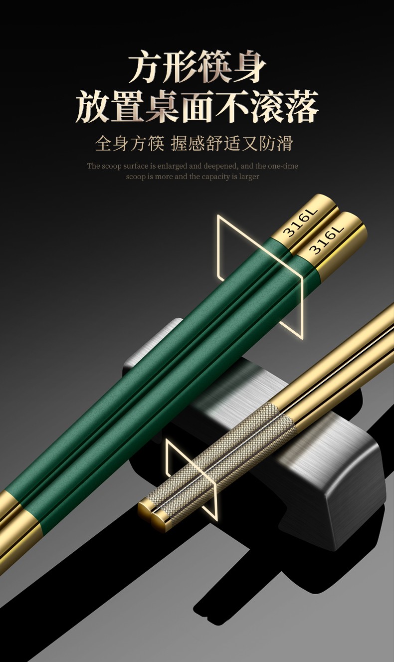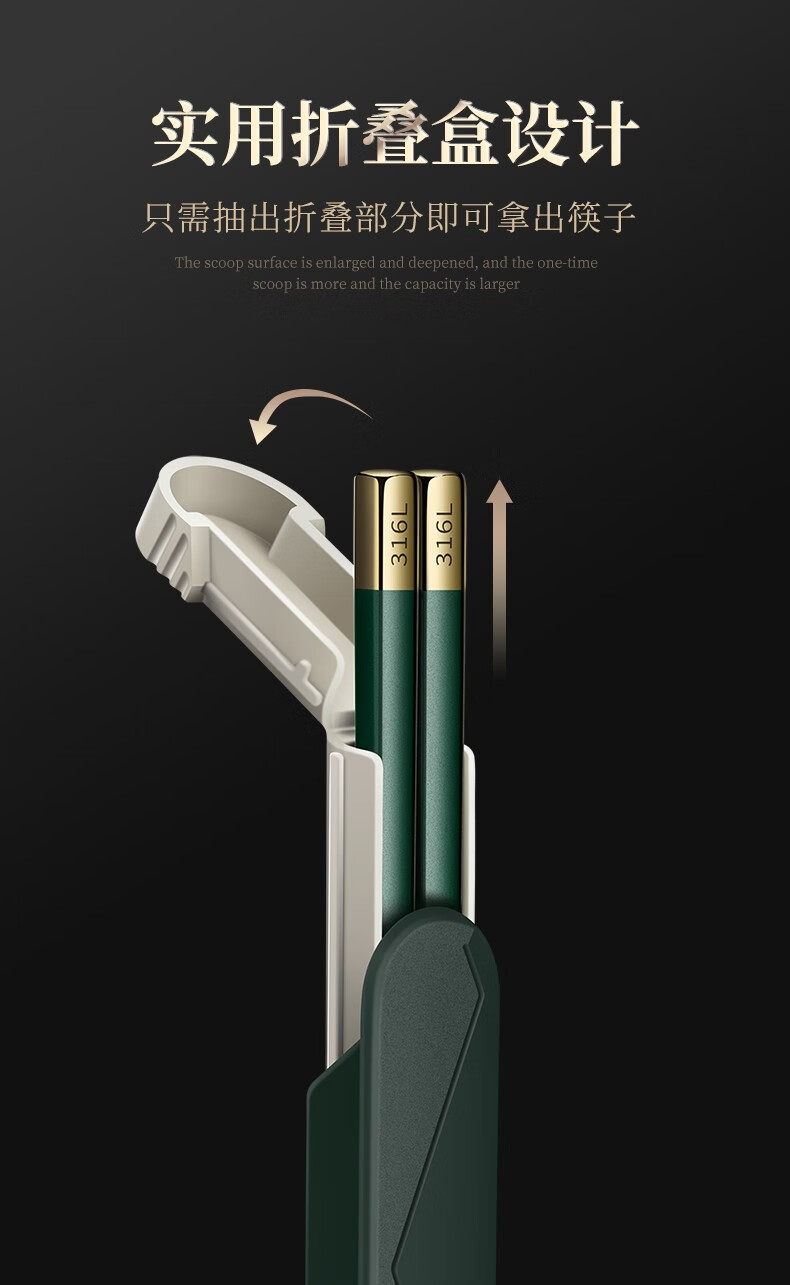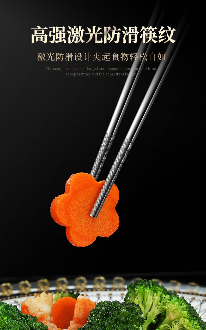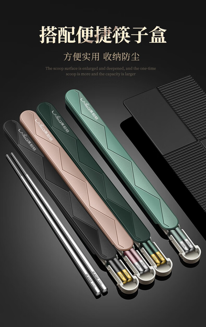 Labton 316L Stainless Steel Chopstick Set Boxed Single Person Portable Chopsticks Special Chopsticks Male Chopsticks Couple Chopsticks Non-Slip and Mold-free Black Box + Gold and Black Chopsticks 316L Stainless Steel