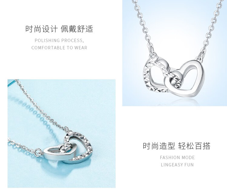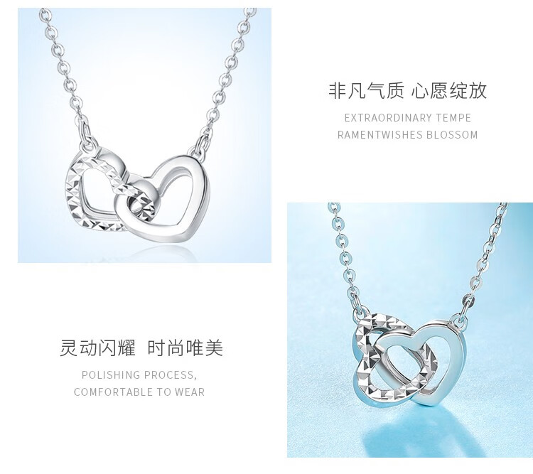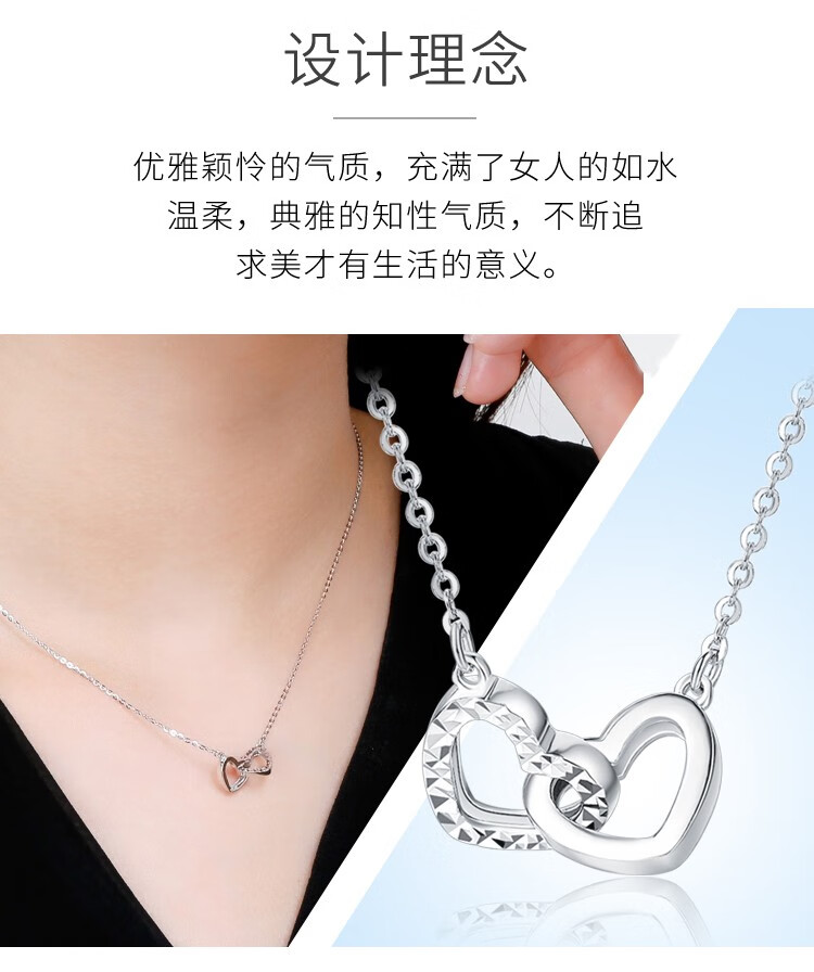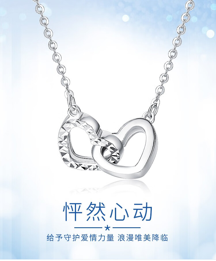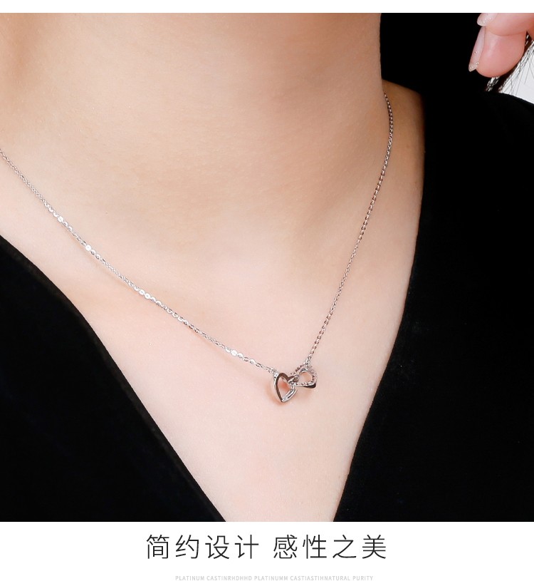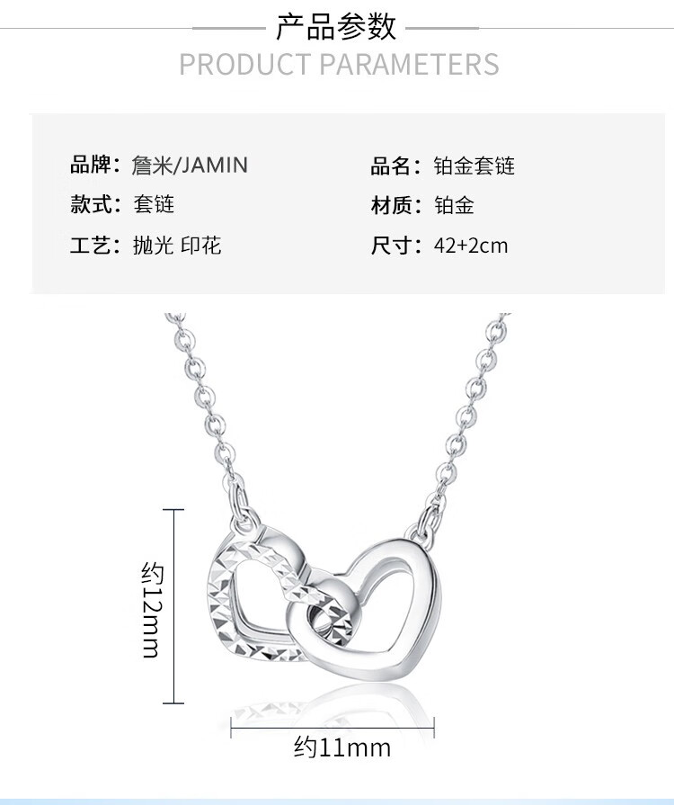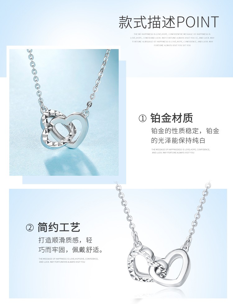 Jamie PT950 platinum double heart-shaped necklace pt950 platinum heart-to-heart chain set as a gift for your girlfriend - PT950 platinum chain set is about 3.6 grams