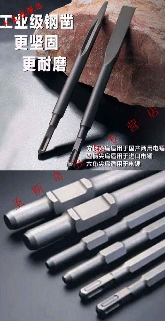 Shouli spring steel high-quality electric pick electric hammer impact drill square shank drill bit hexagonal square head chisel 2F flat chisel spring steel square chisel (pack of two)