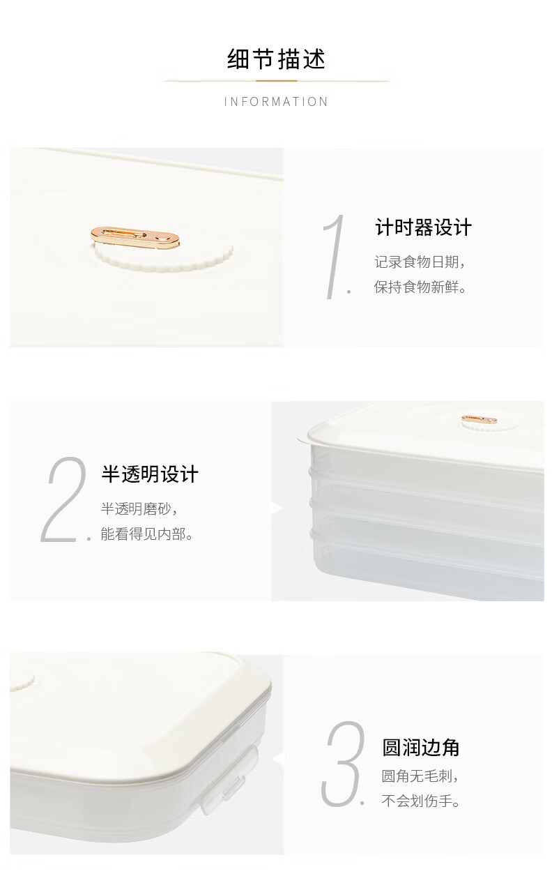 Modern Housewife Dumpling Storage Box Home Dumplings and Wonton Crisper Box Refrigerator Quick Freezer Box Food Grade Freezer Box Dumpling Box White - Can Hold 120 Dumplings 2 Layers Specifications See Figure 2 for details
