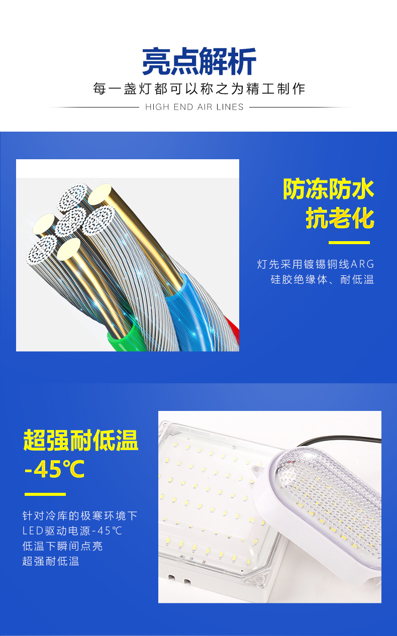 Aroden LED special lamp for cold storage, waterproof and moisture-proof lamp, explosion-proof and three-proof lamp, bathroom lamp, special lamp for cold storage and ice storage, square cold storage lamp 45/W