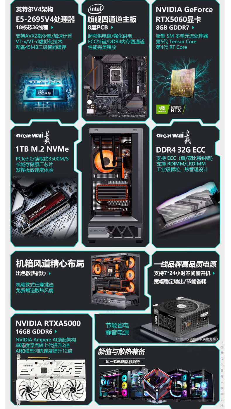 Colorful RTX5060Ti/RTX5060/5050 independent graphics + Intel high-end 18-core 36-thread desktop computer RTX4070/4060/3060 e-sports live broadcast design host configuration three, play 3A masterpieces/large designs/live broadcast delivery