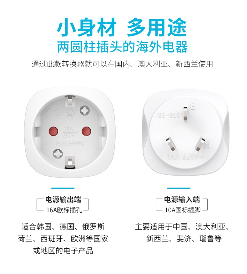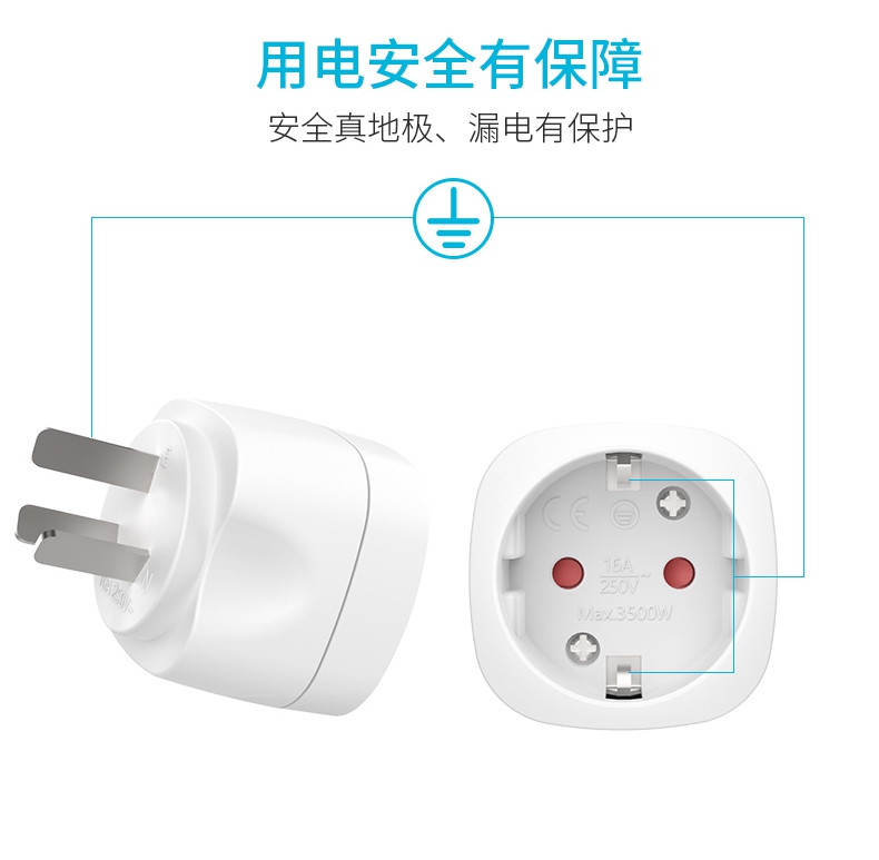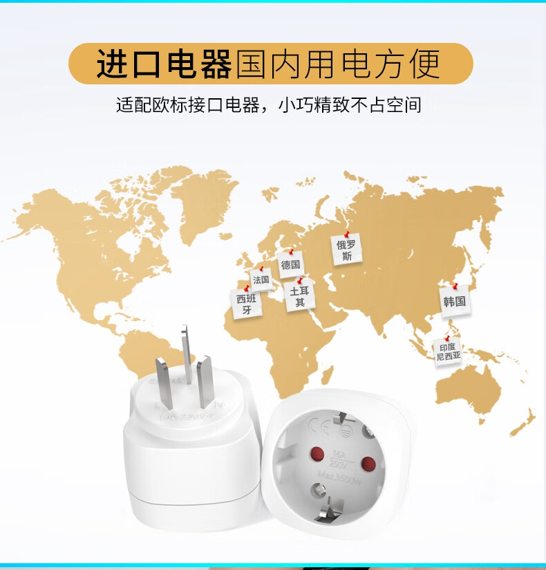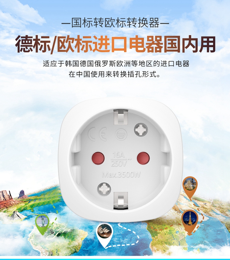 16A250V European standard plug converter German, French and Korean imported electrical appliance conversion socket German standard to national standard