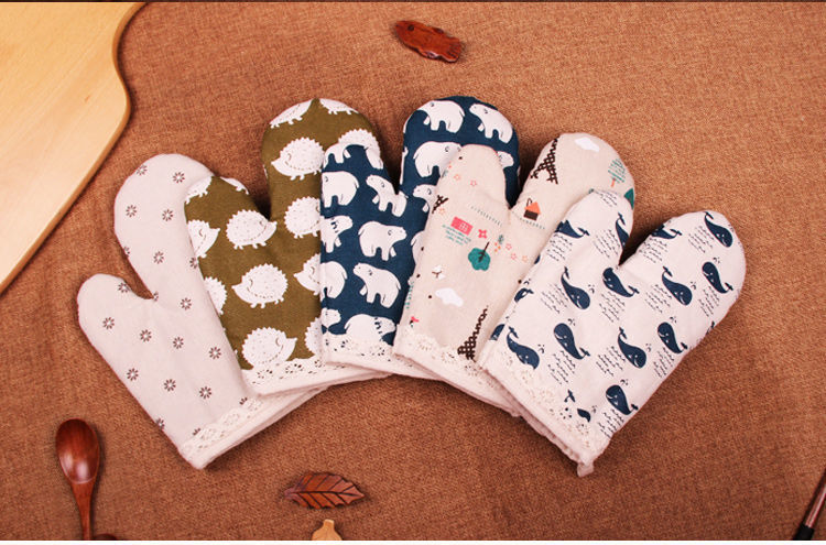 Jidaocook 2 pieces thickened microwave oven gloves with high temperature resistance and heat insulation for kitchen household heat-proof oven oven baking special anti-scalding green leaves (2 pieces)