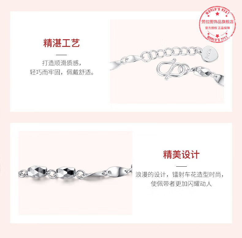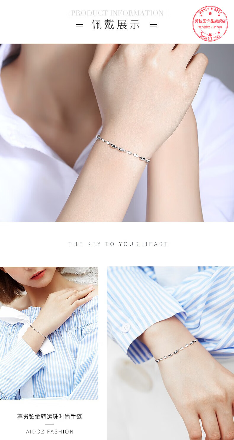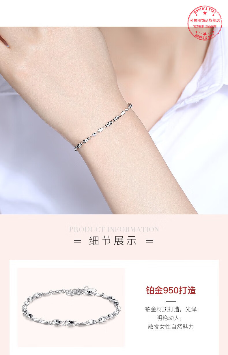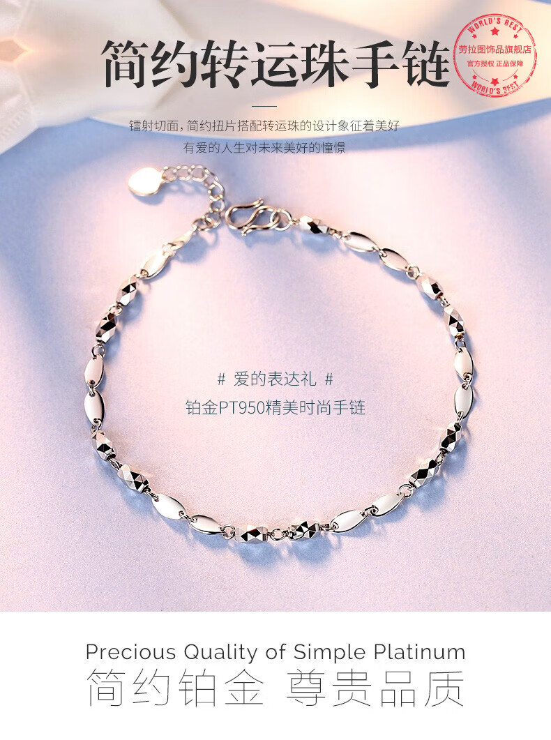 LAOLATU transfer bead platinum bracelet for women PT950 platinum 2025 new Chinese Valentine's Day gift for girlfriend and wife PT950 platinum transfer bead bracelet