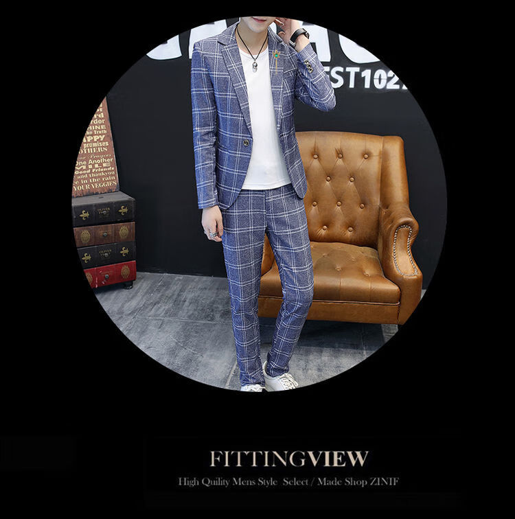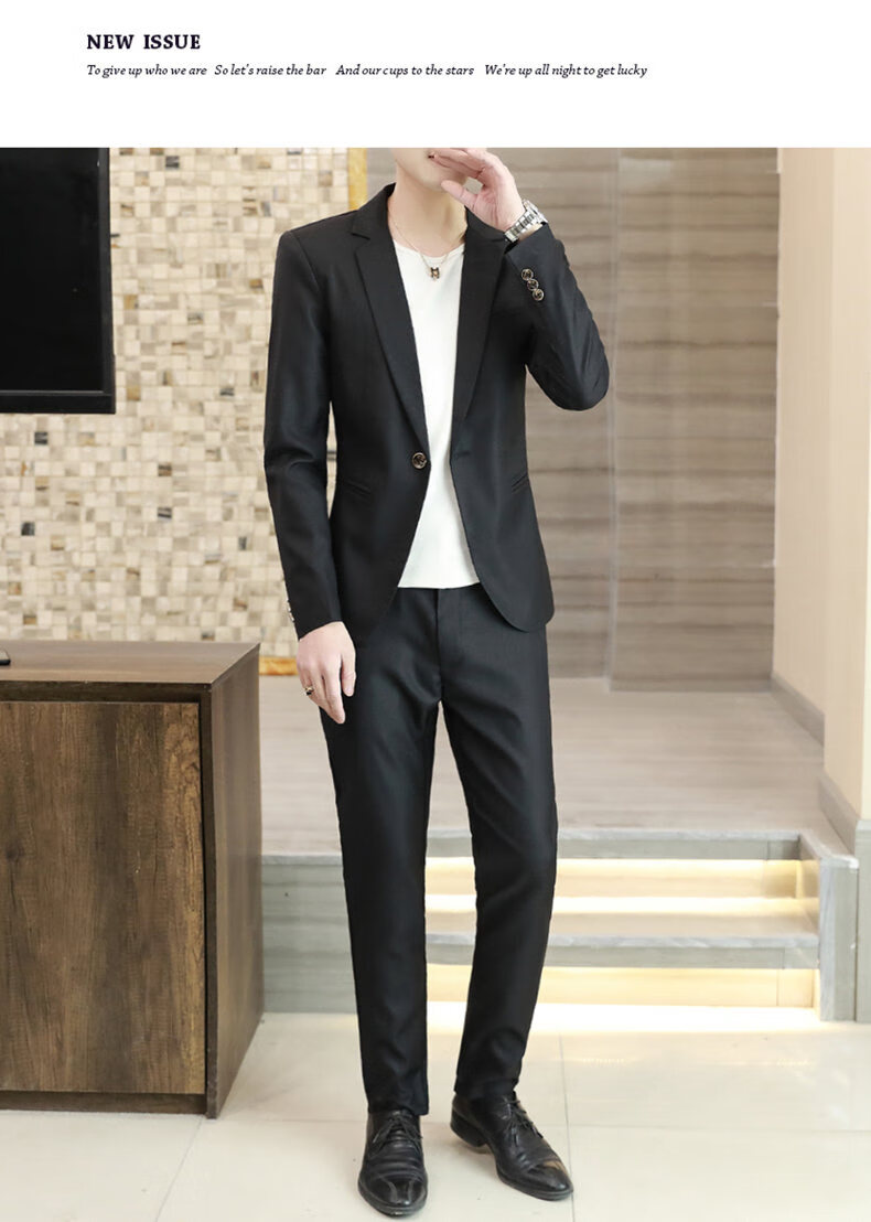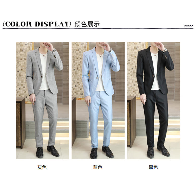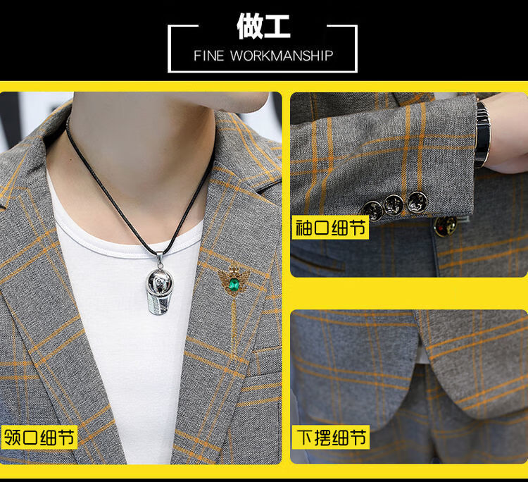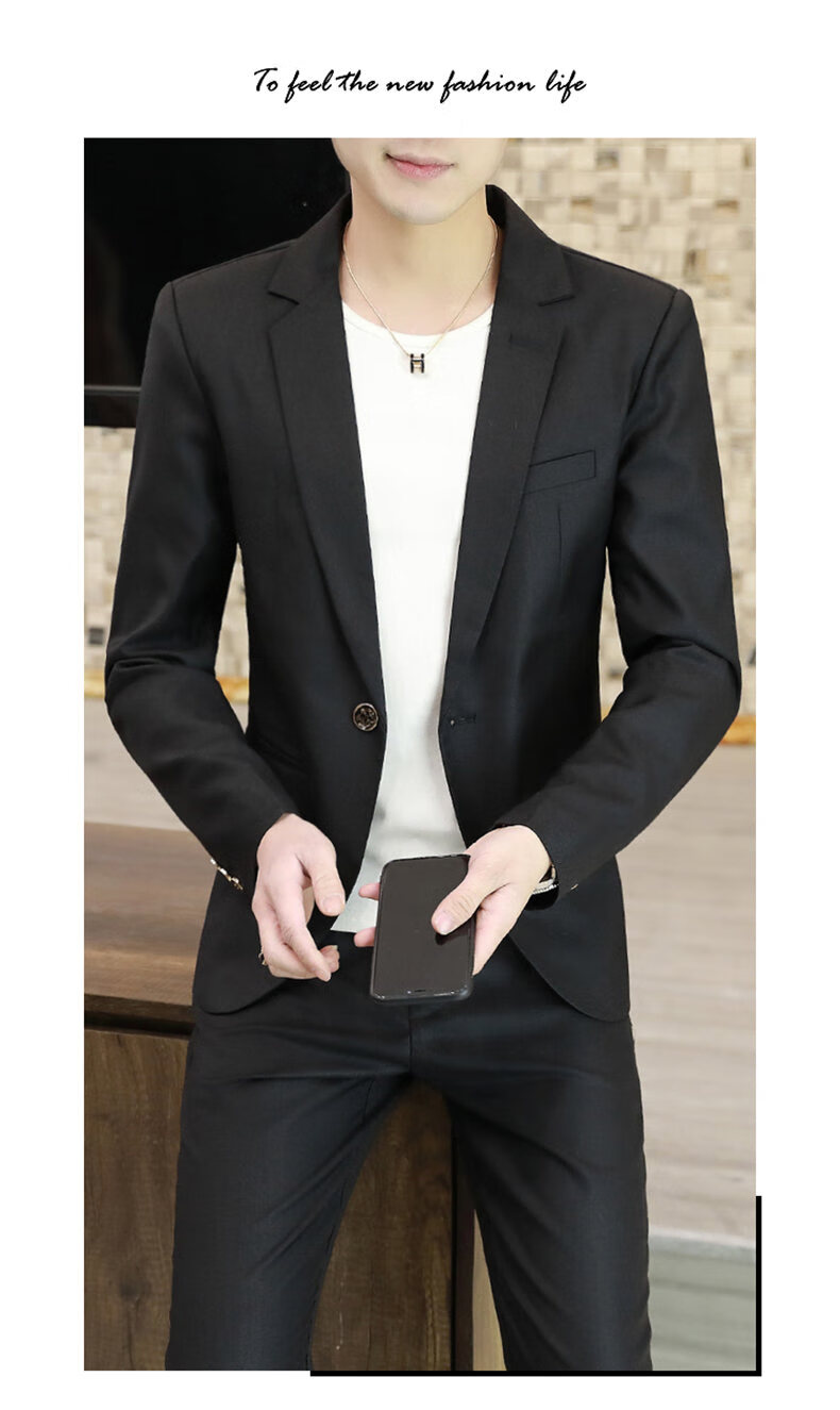 Woodpecker Korean style casual spring and autumn suit men's slim business formal wear Sina Piushuai thin casual small suit for men 1917 gray suit + pants + T-shirt XL recommended 122-131Jin Jin equals 0.5 kg