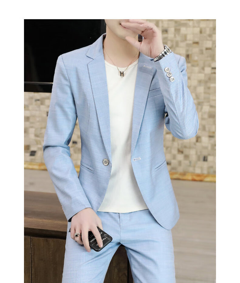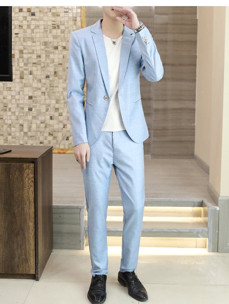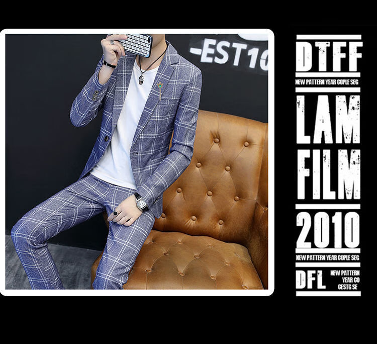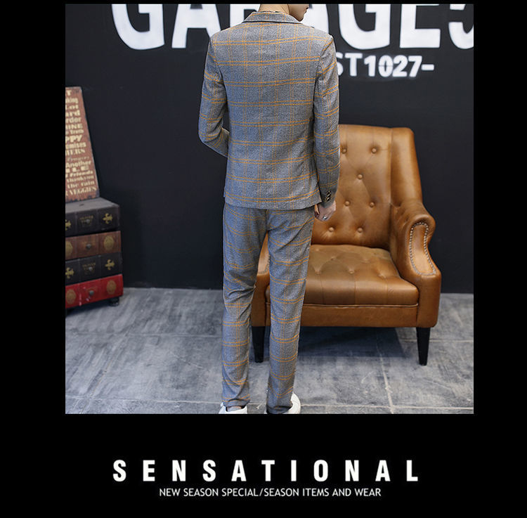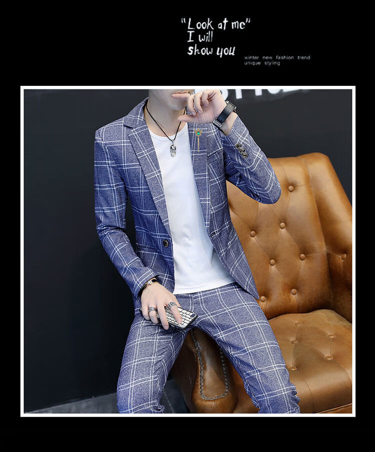 Woodpecker Korean style casual spring and autumn suit men's slim business formal wear Sina Piushuai thin casual small suit for men 1917 gray suit + pants + T-shirt XL recommended 122-131Jin Jin equals 0.5 kg