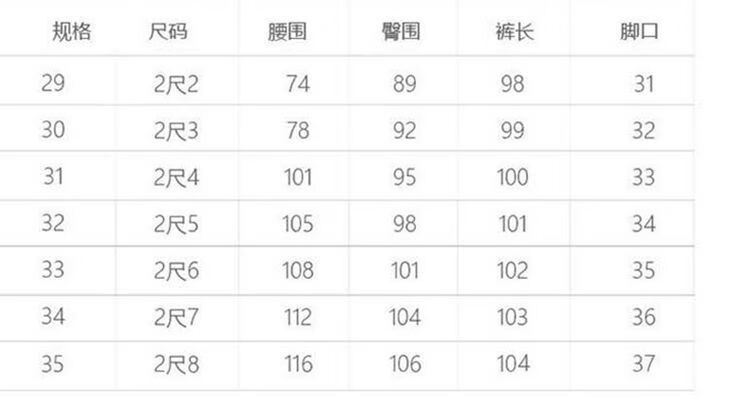 Outseam (cm) 99 cm 101.5 cm 104 cm 106.5 cm 109 cm