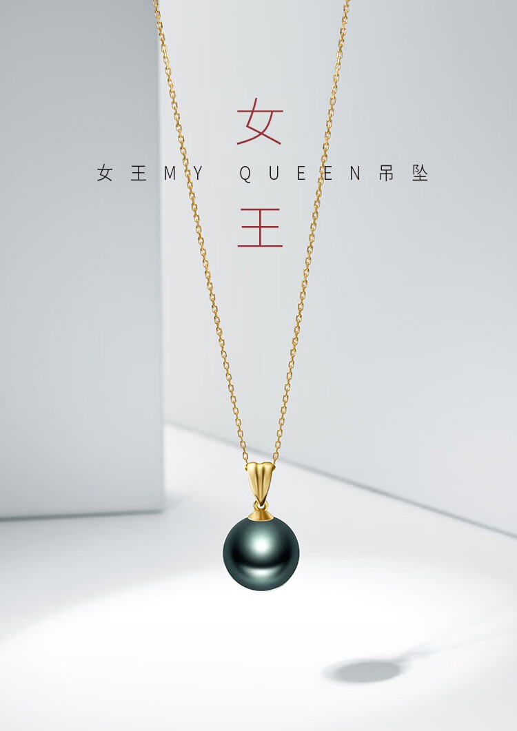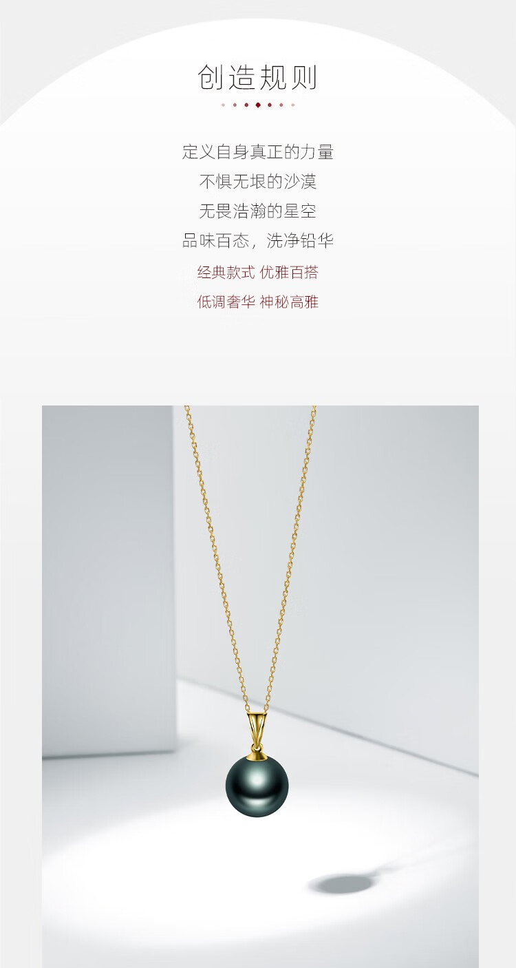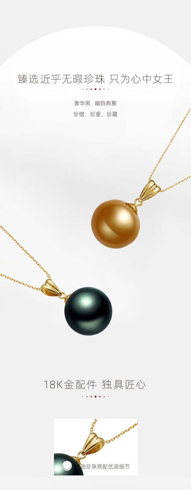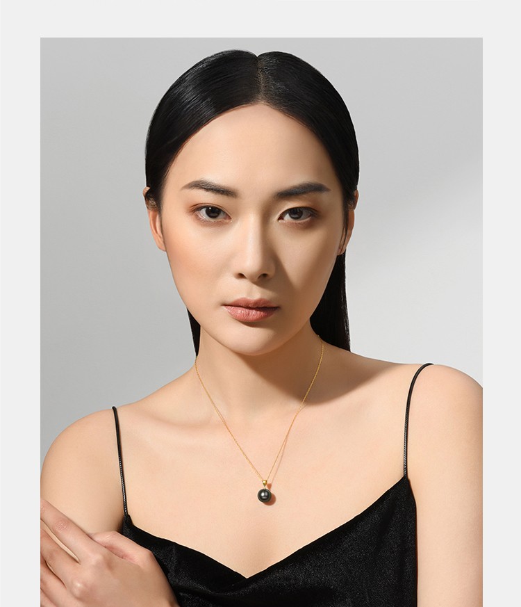 Ruan Shi 18k gold seawater Tahitian black pearl pendant, simple pearl necklace for women, gift for girlfriend, jewelry for self-wear, 18K gold-white/black pearl/9-10mm
