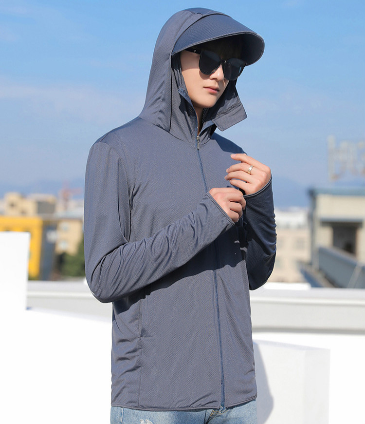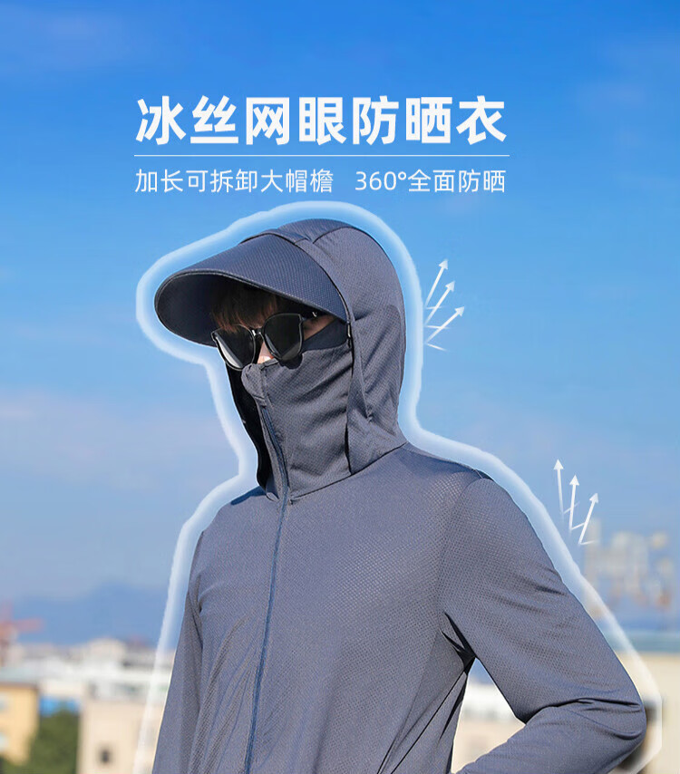 Mengtaiyi fishing sun protection clothing for men, removable visor sun protection clothing set, ice silk fishing clothing, summer outdoor breathable and lightweight, dark gray, 3XL size, 150-190Jin Jin is equal to 0.5kg recommended