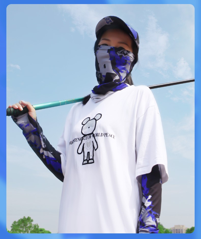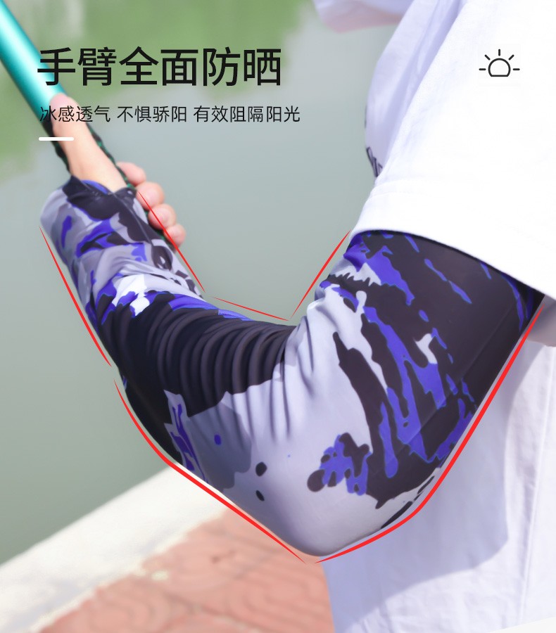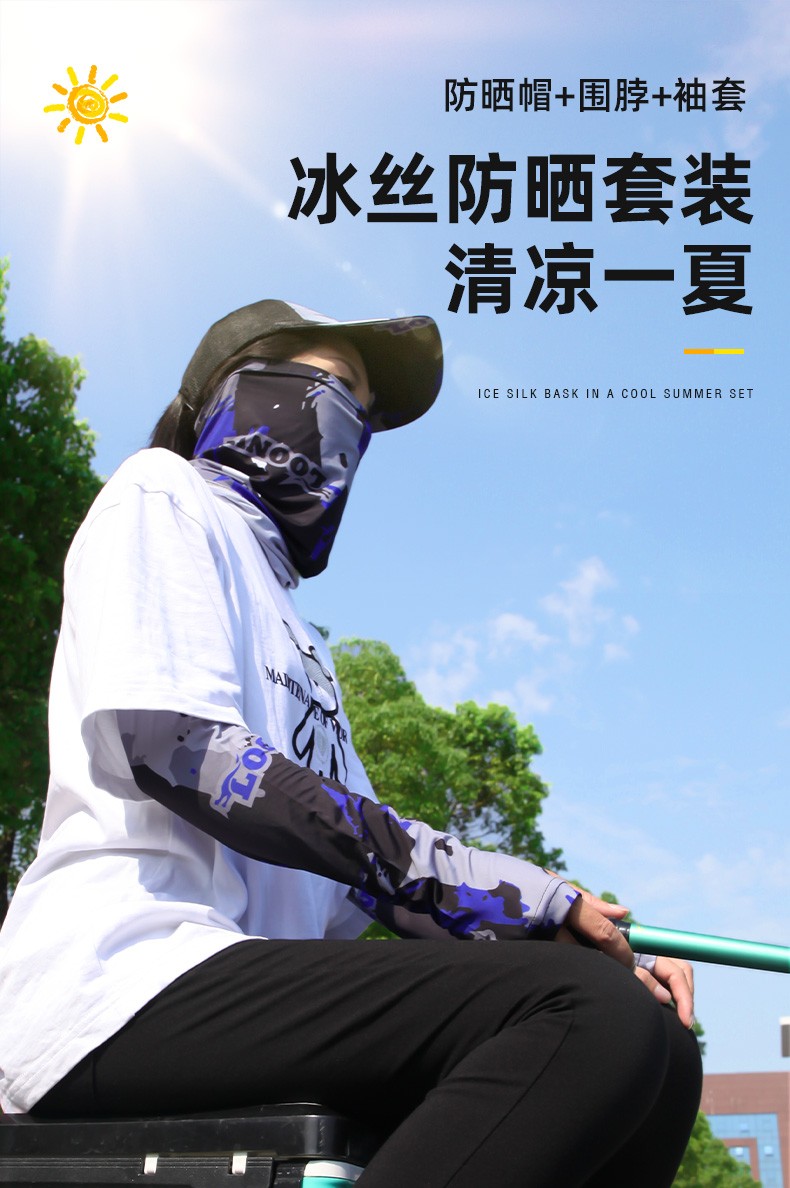 Dragon King Hates Fishing Clothing Summer Outdoor Fishing Ice Silk Sleeves Sun Shade Sunscreen Breathable Veil Neck Scarf Face Covering Magic Headband Sleeves (Colorful Blue)