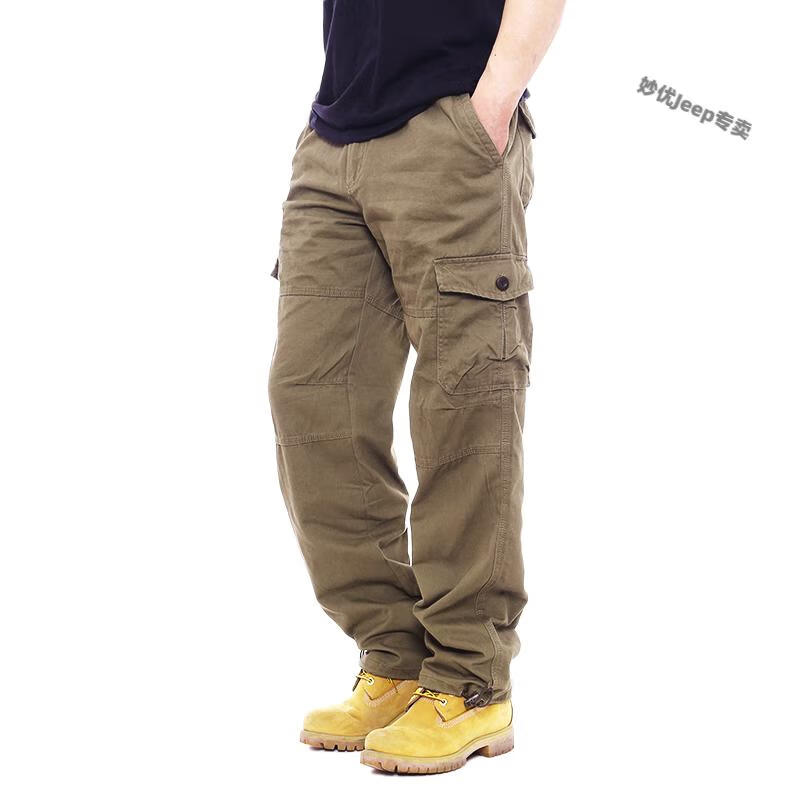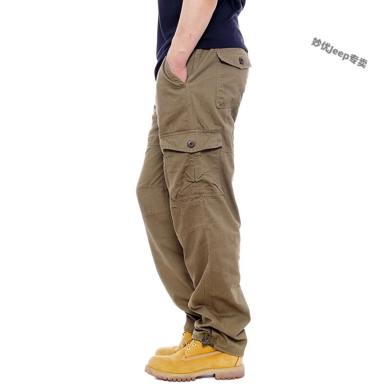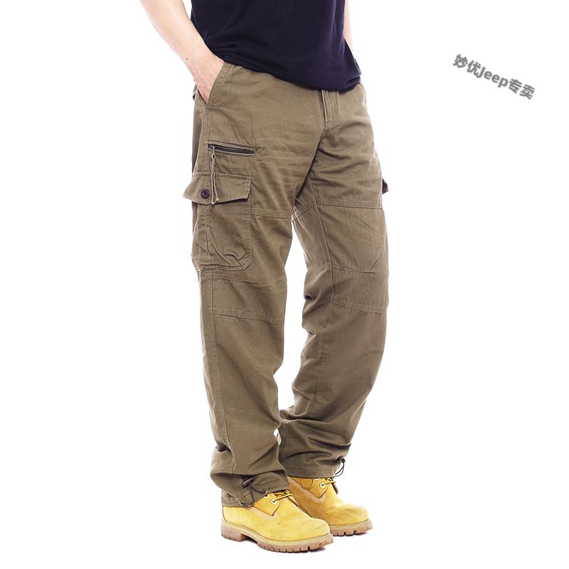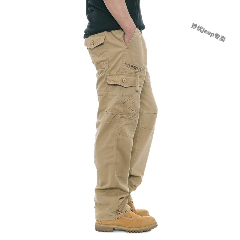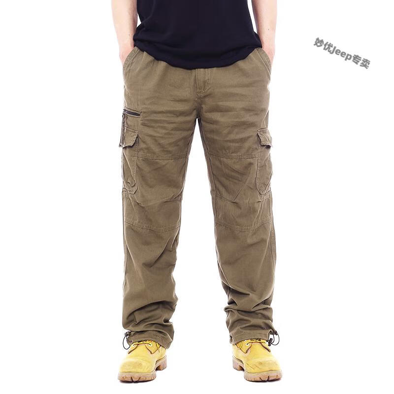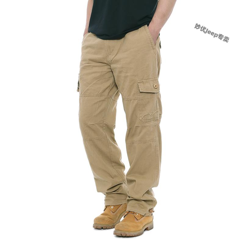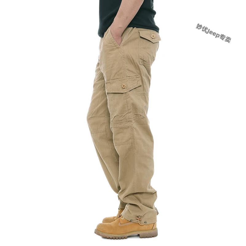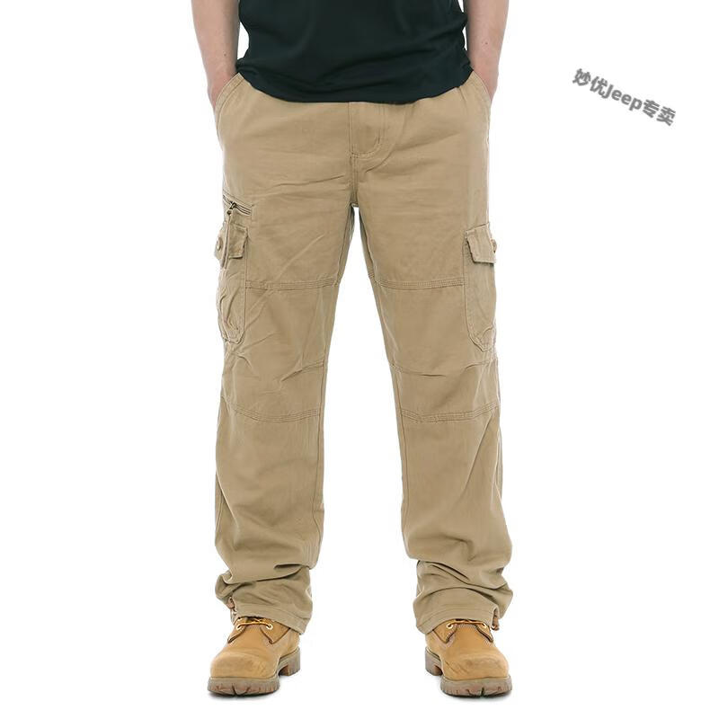 JEEP outdoor overalls men's leggings casual pants American spring and autumn assault trousers windproof straight loose camouflage mountaineering K115 Khaki regular L (170) 125-145Jin Jin equals 0.5 kg