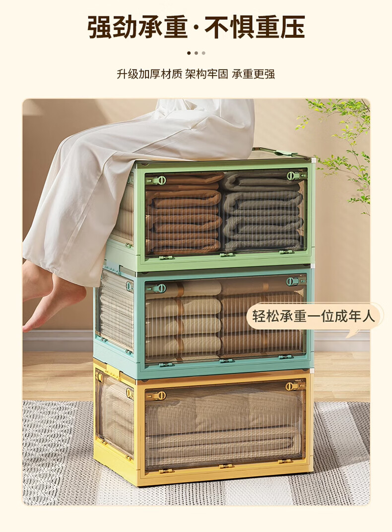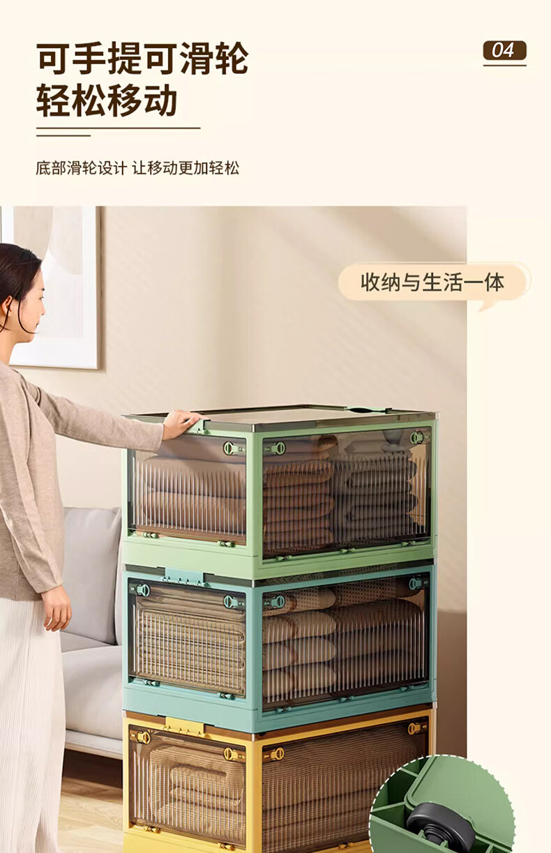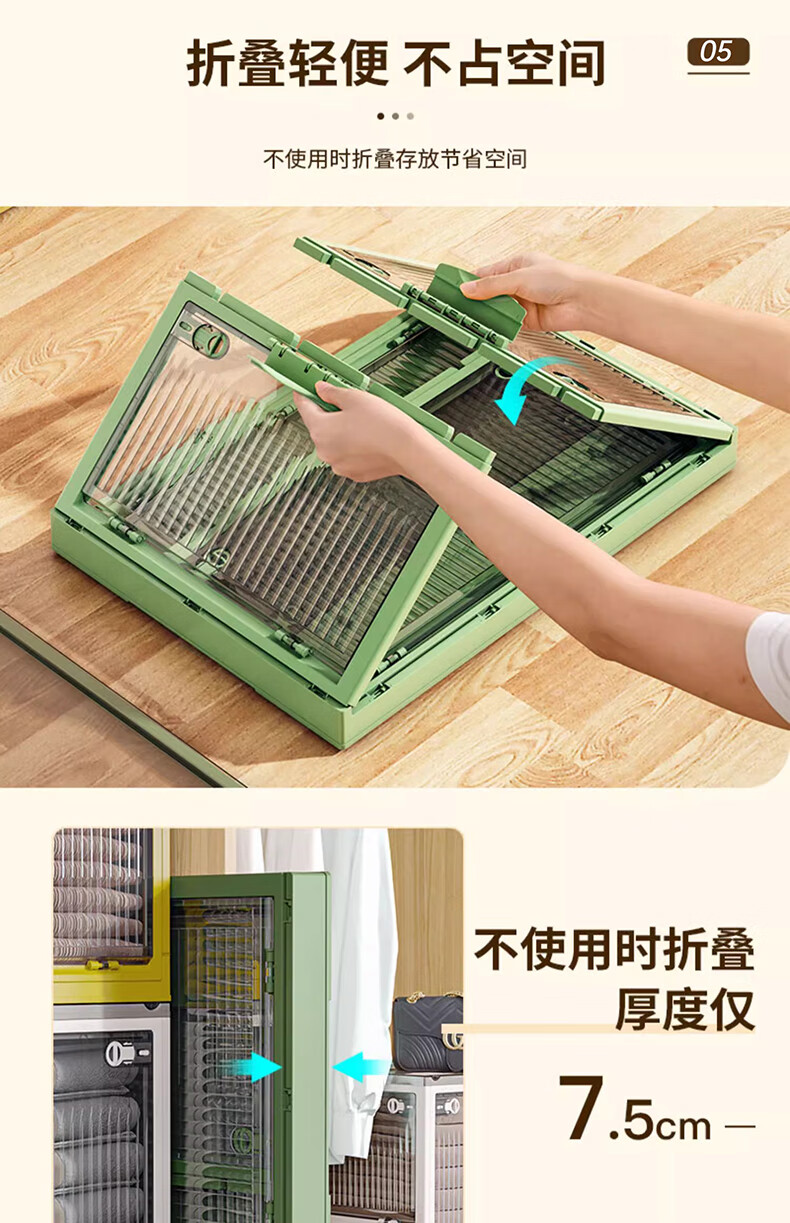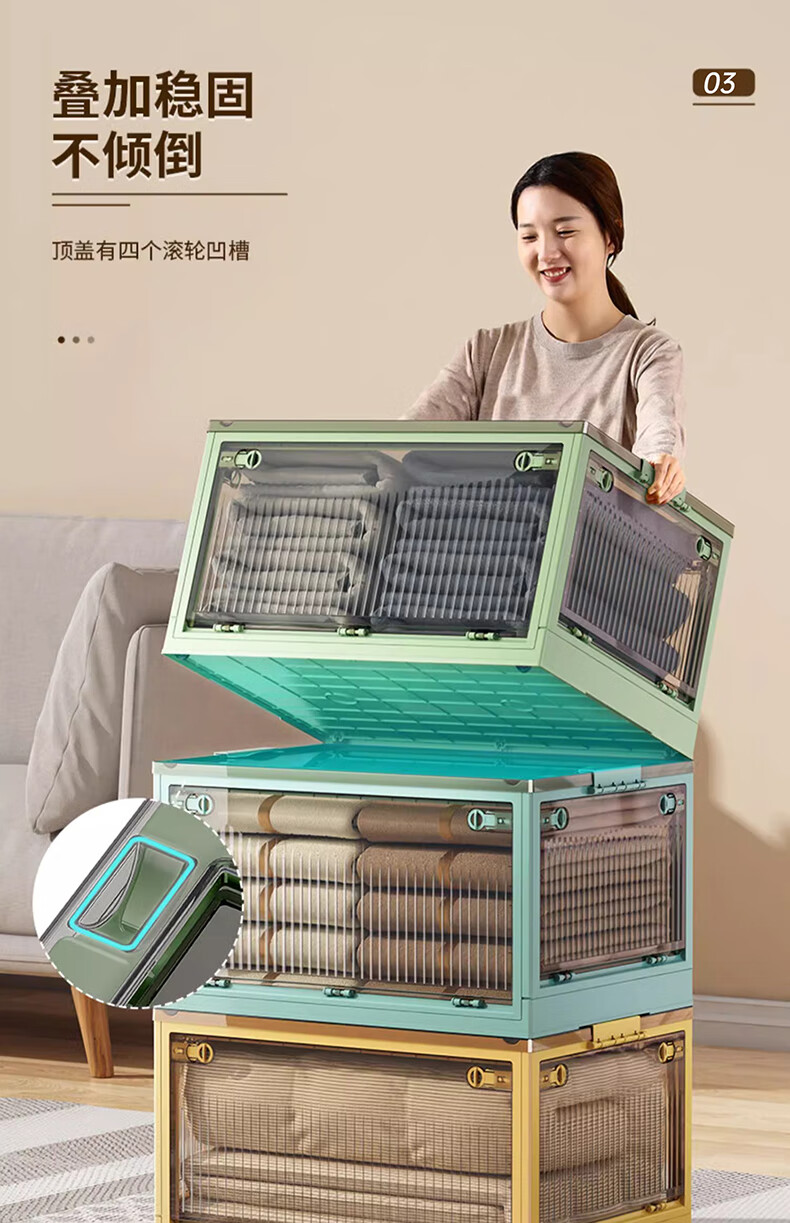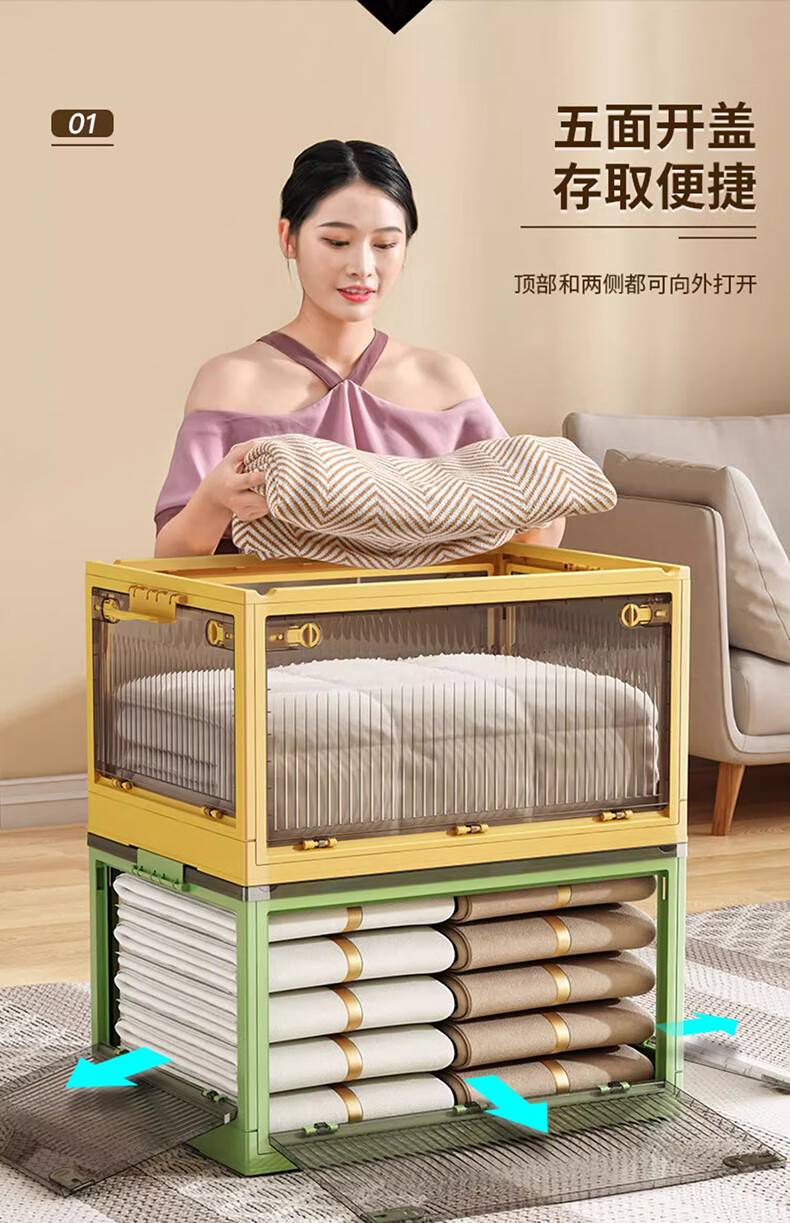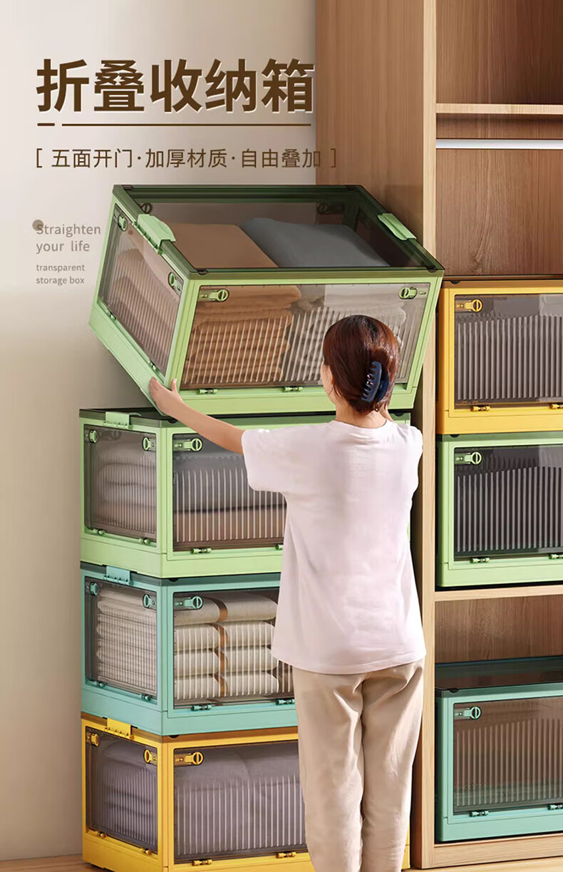 Winterret Storage Box Home Folding Wardrobe Clothes and Quilts Storage Artifact Plastic Transparent Storage Box Toy Organizing Box Five-Side Doors - Ruozhu Green Extra Large 60*42*33.5cm