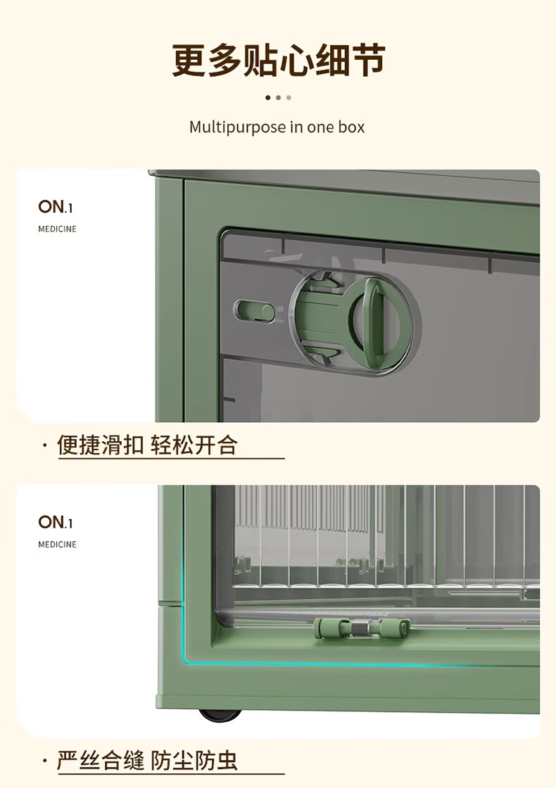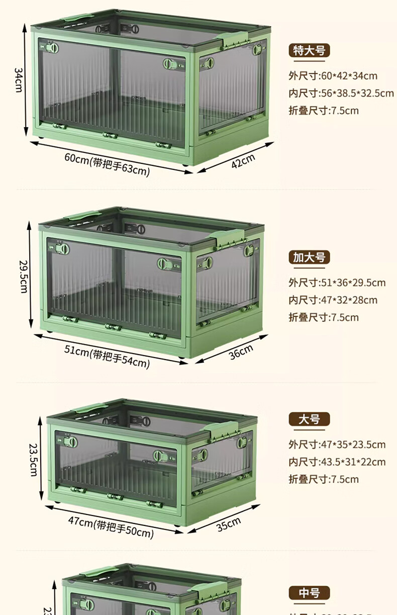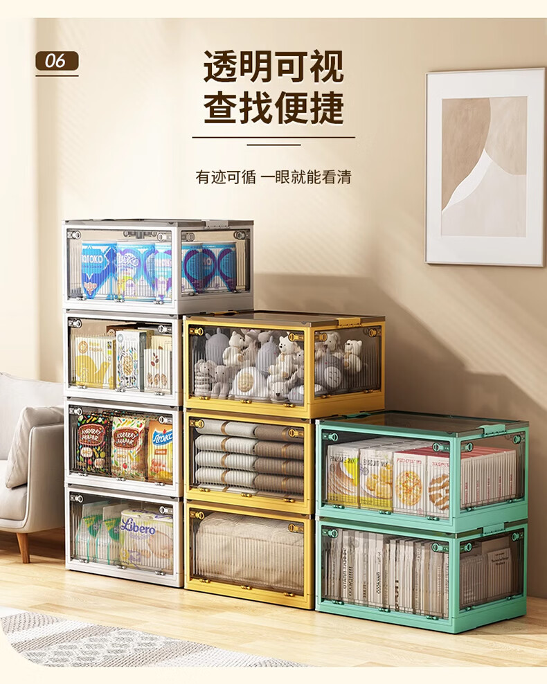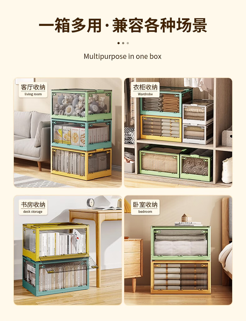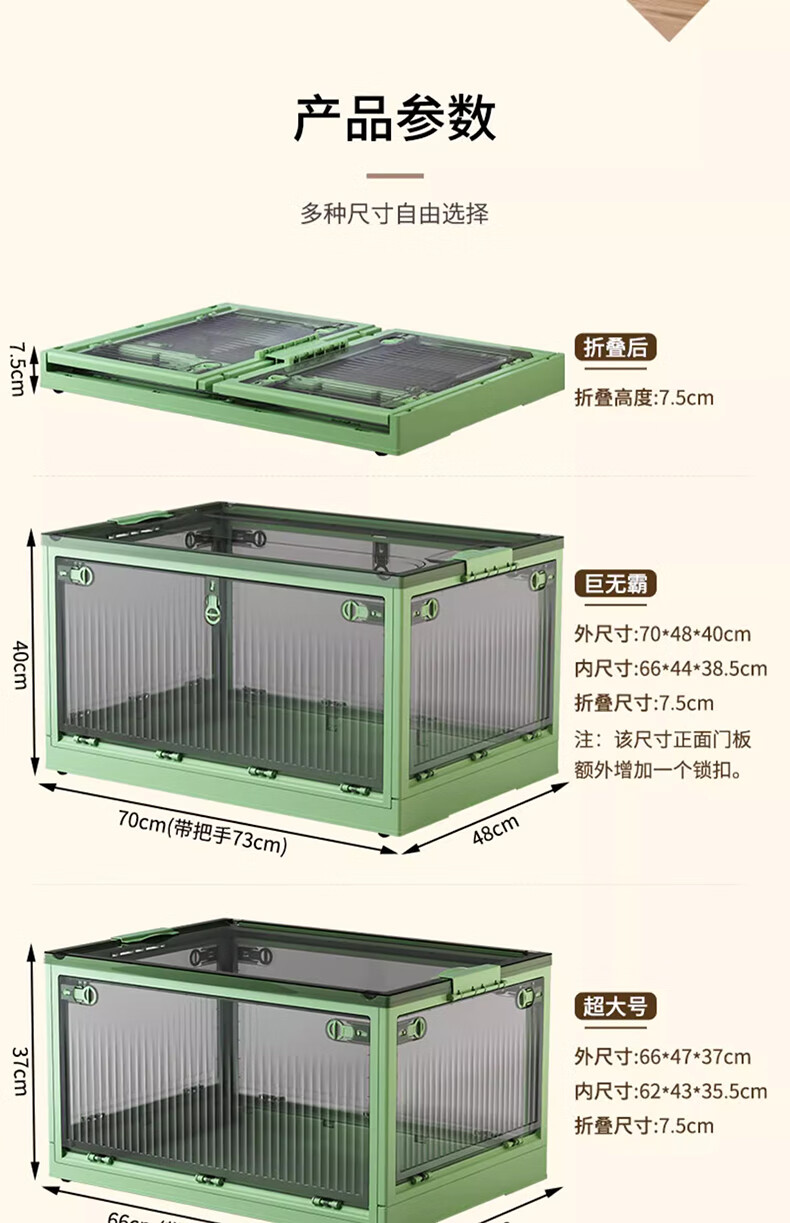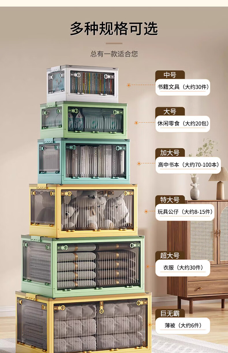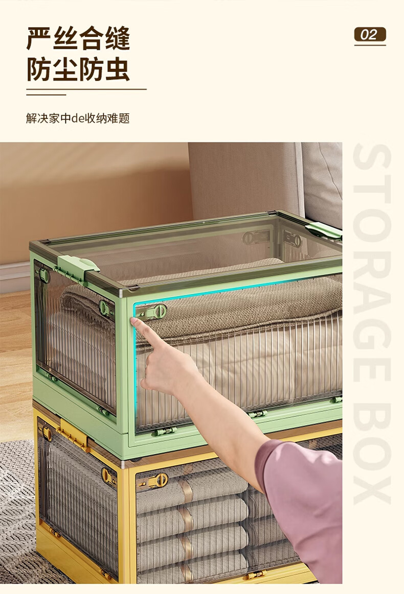 Winterret Storage Box Home Folding Wardrobe Clothes and Quilts Storage Artifact Plastic Transparent Storage Box Toy Organizing Box Five-Side Doors - Ruozhu Green Extra Large 60*42*33.5cm