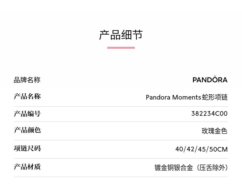 Pandora (PANDORA) Moments snake-shaped necklace necklace rose gold style birthday gift for girlfriend Pandora Moments snake-shaped necklace 45CM