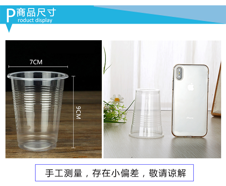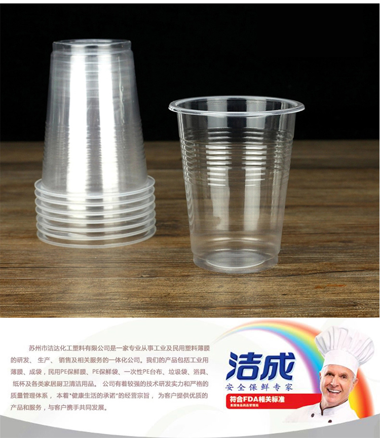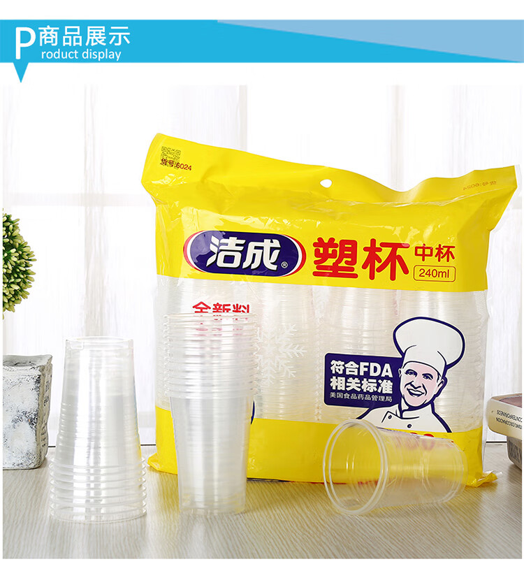 Jiecheng thickened transparent plastic water cups 240ml disposable cups 100 pieces Thickened plastic cups 100 pieces