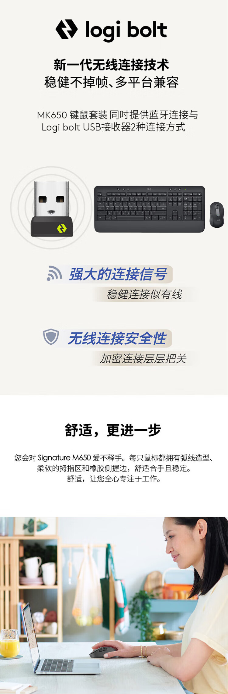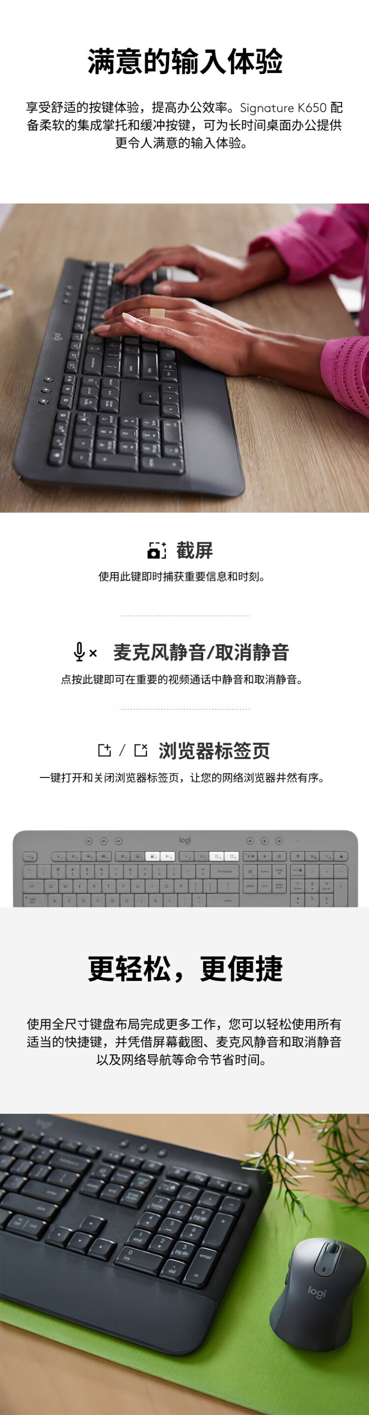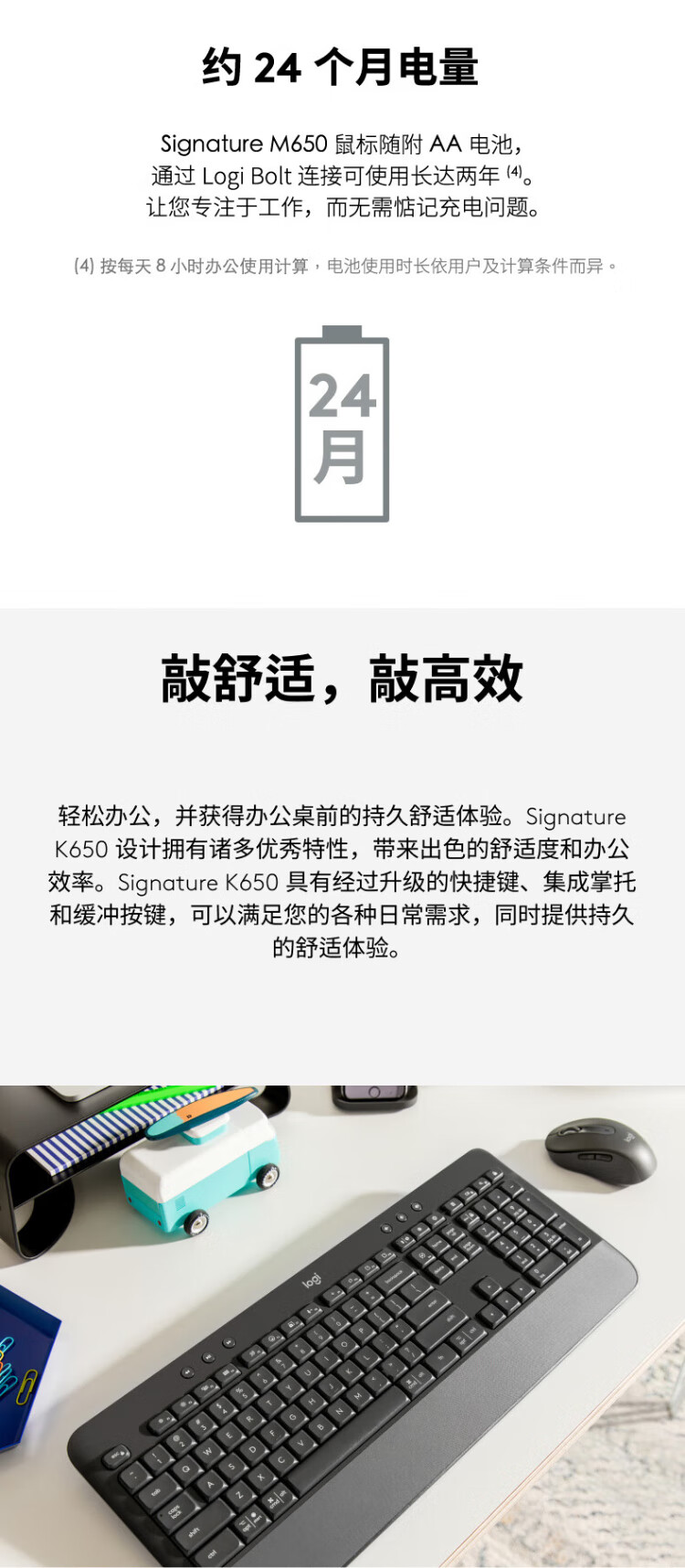 Logitech Select Series K650 Wireless Bluetooth Office Keyboard MK650 Wireless Keyboard and Mouse Set Mac iPad Wireless Keyboard and Mouse Home Set with Palm Rest K650 Keyboard White
