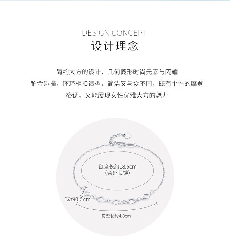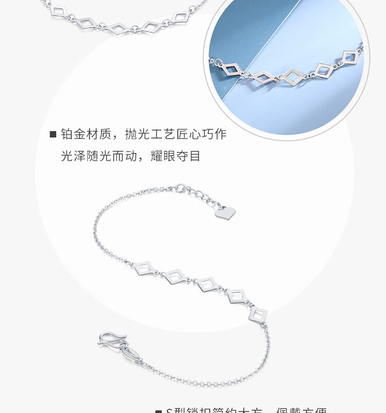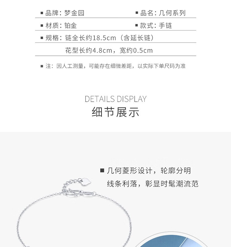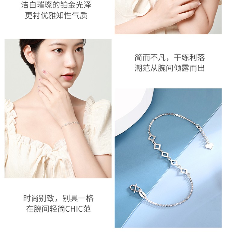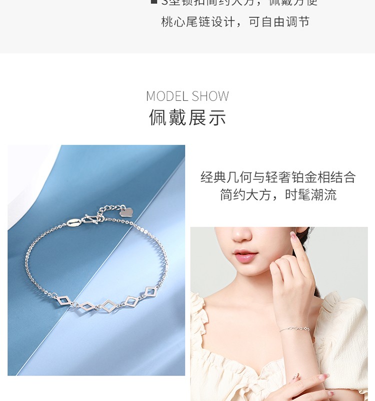 Mengjinyuan Platinum Bracelet PT950 Geometric Square Ring Square Piece Platinum Bracelet for Girlfriend’s Birthday Gift 18cm Approximately 1.84g