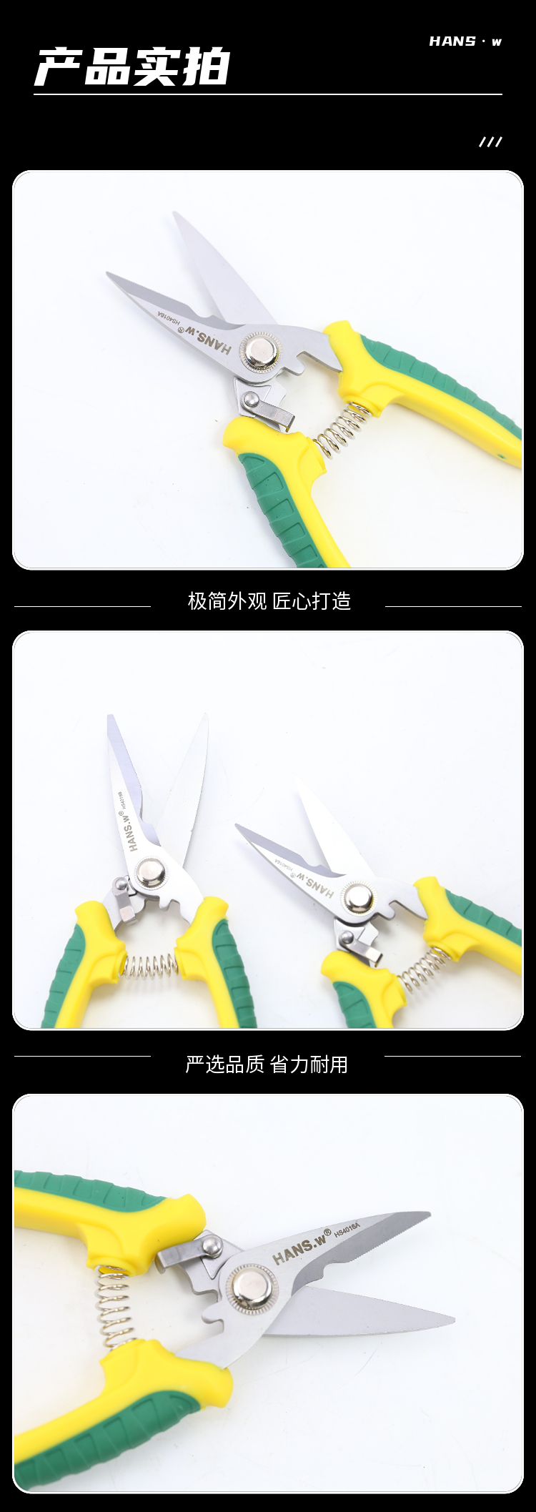 Hans King multi-purpose large-cut household scissors, iron scissors HS4016 scissors, iron wire, copper core wire, multi-purpose, 7 inches