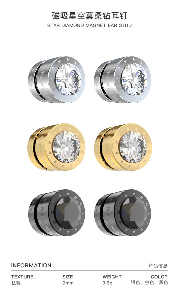 Rawness Magnetic Earrings Moissanite Diamonds Niche High-end Handsome Earrings Without Holes Men's New Fashion Star Silver Magnetic Pair