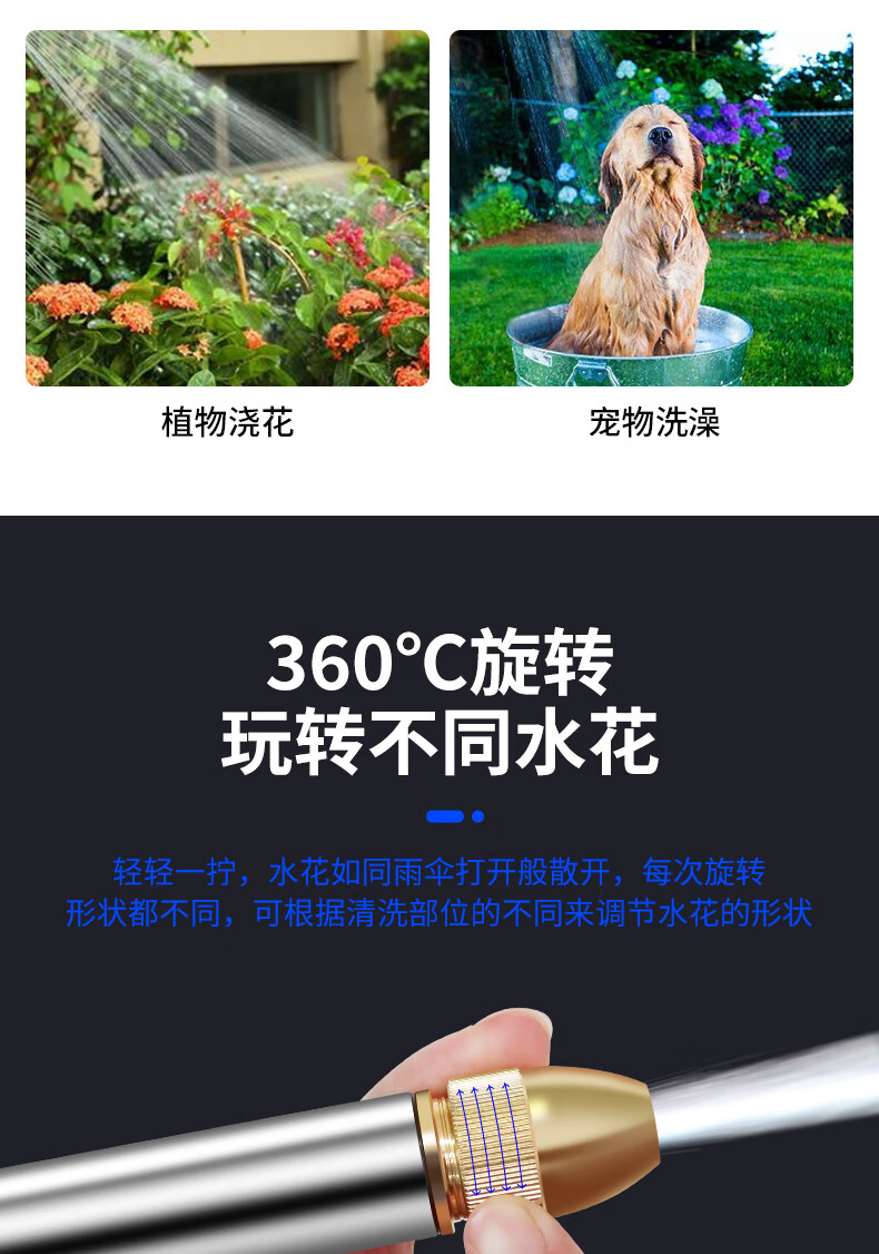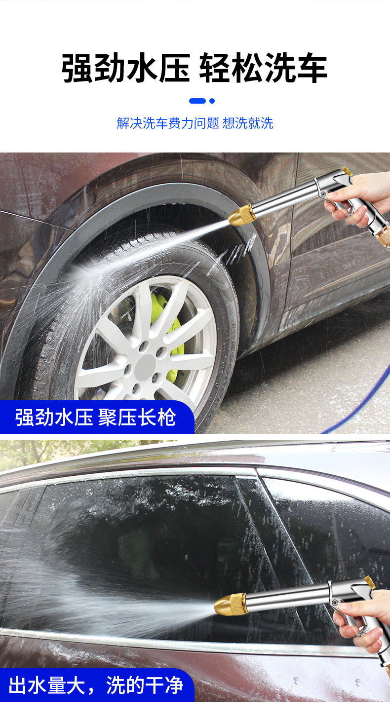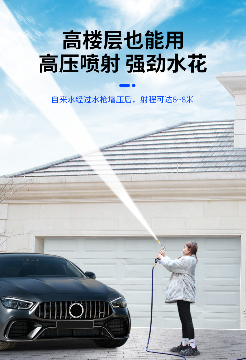 Giant wood car wash water gun high-pressure household artifact telescopic water pipe hose powerful spray gun nozzle rush flushing car tools alloy gun head 22 meters + storage bag (7.5 meters before water injection)